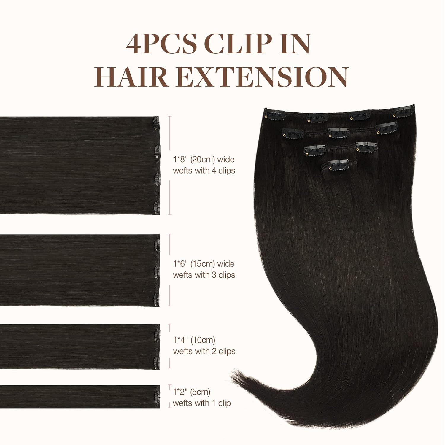 Clip In Hair Extensions Specification: GOO GOO seamless clip-in hair extensions with PU are available in 110g, 130g, 150g; clip-in extensions are offered in weights of 120g and 150g for selection. Perfect for a natural thickness boost with 1-2 sets, or achieve a full, voluminous look with 2-3 sets. Ideal for adding both length and volume. Plus, 2 additional replacement clips for your convenience.