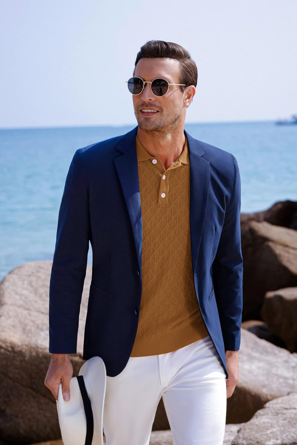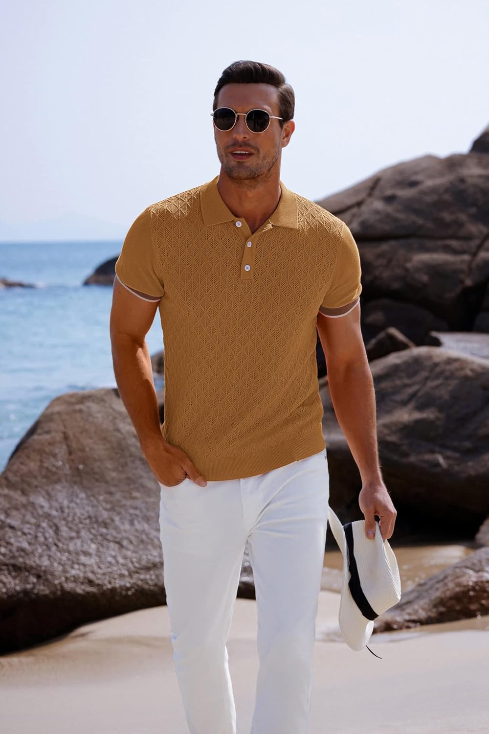 GRACE KARIN Mens Breathable Polo Shirts Short Sleeve Lightweight Knit Texture Golf Shirts Knitwear