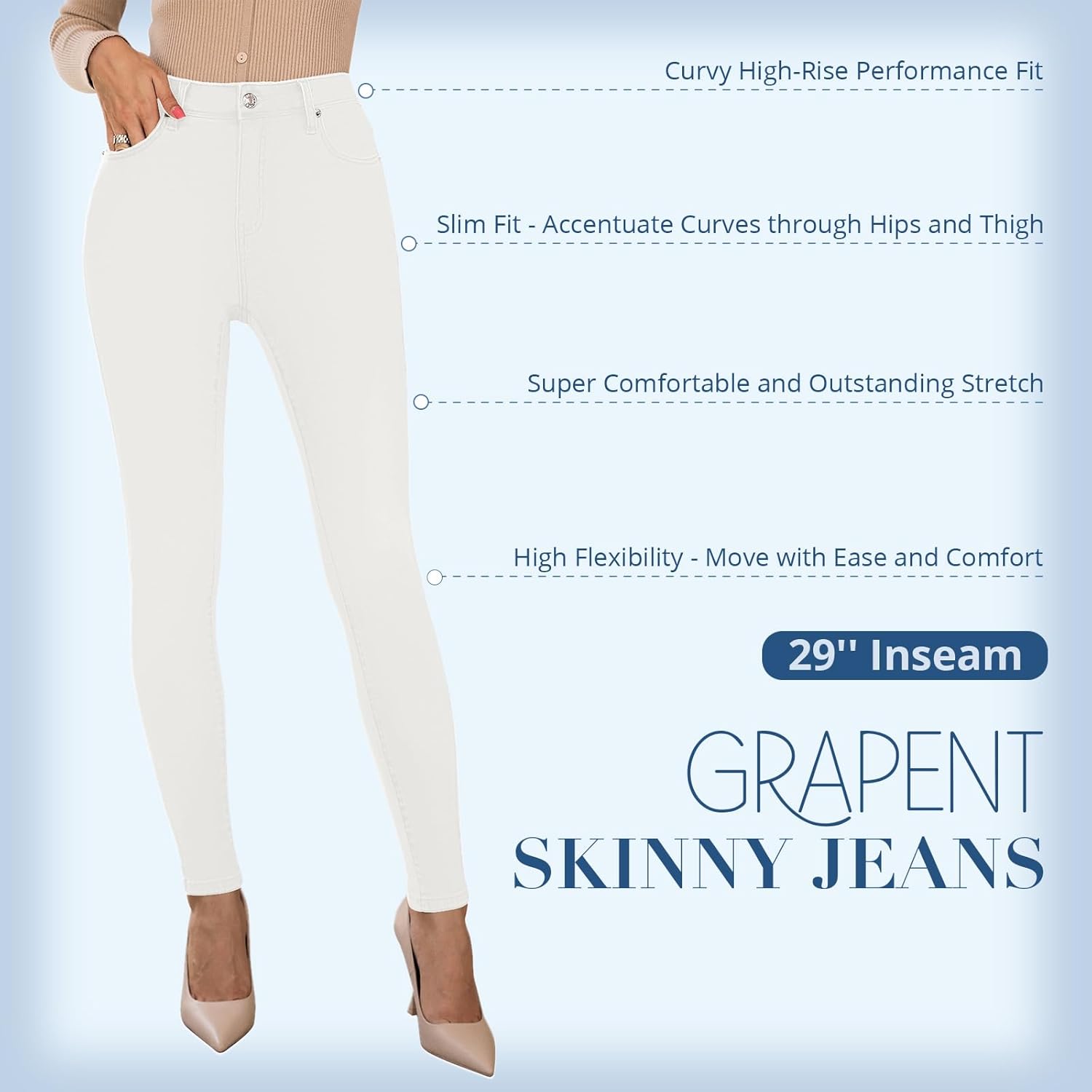 GRAPENT Skinny Jeans for Women High Waist Stretchy Classic High Rise Slimming Jeggings Denim Trousers Pants