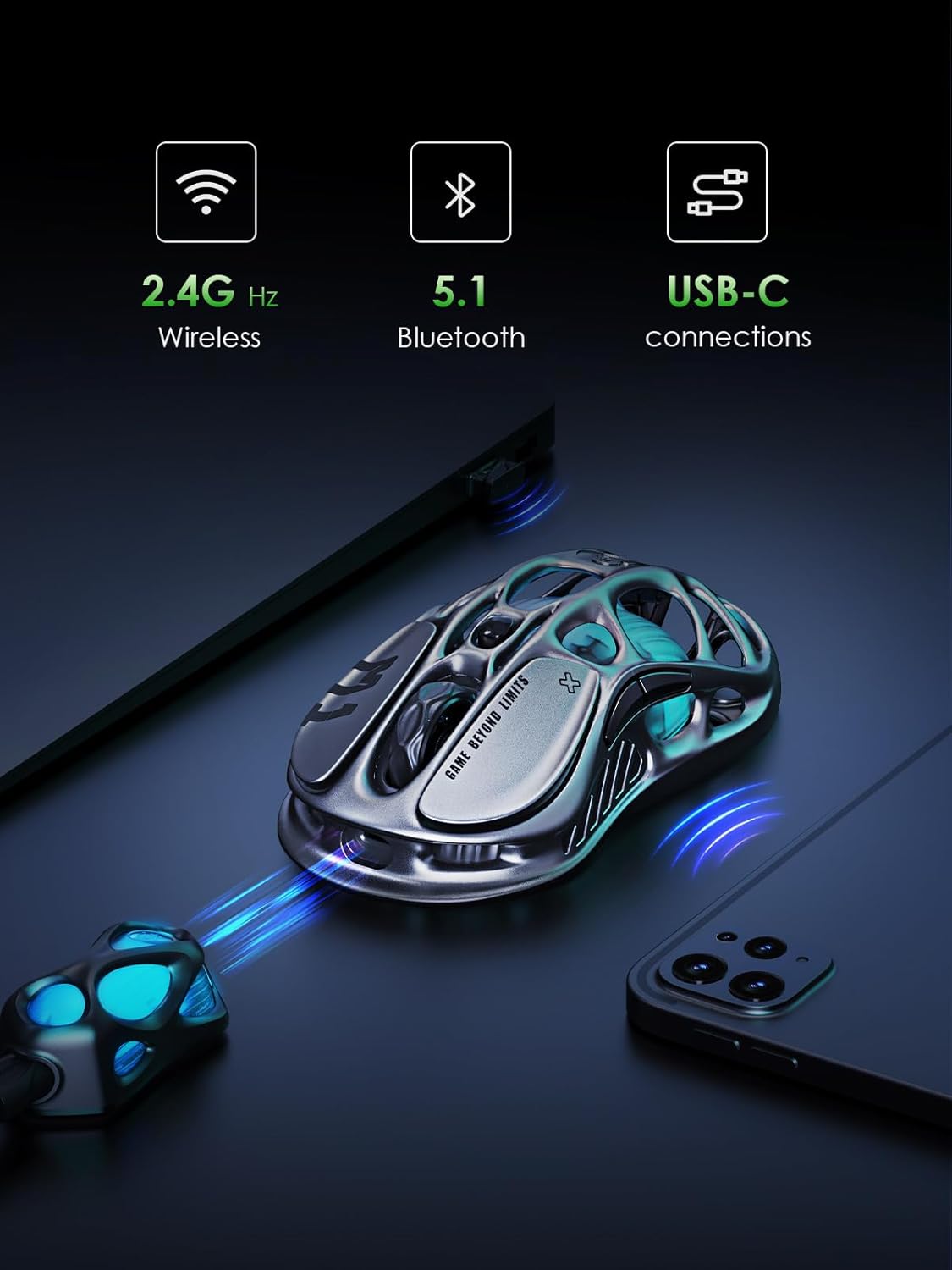 GravaStar Mercury M1 Pro Wireless Gaming Mouse, Lightweight Magnesium Alloy, 26,000 DPI, PAW3395DM Sensor, 5 Programmable Buttons, Support Wired/2.4GHz/BT, Compatible with PC/MAC – Gifts for fathers