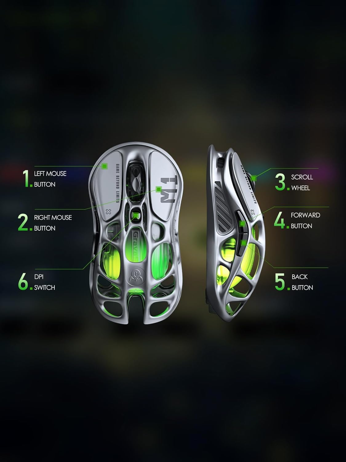 Experience the unique blend of style and practicality with the M1 Pro’s hollowed-out design. This creative approach not only gives the mouse a distinctive look but also ensures optimal airflow, keeping your grip cool during intense gaming sessions.