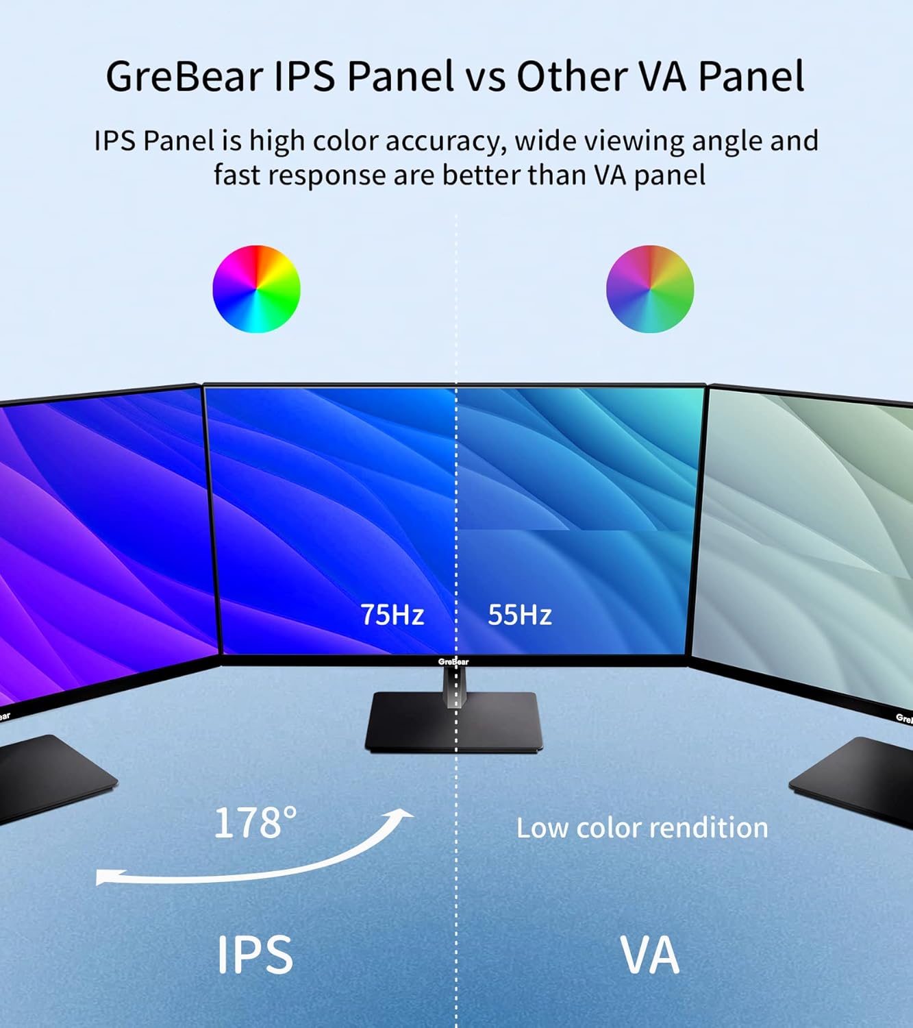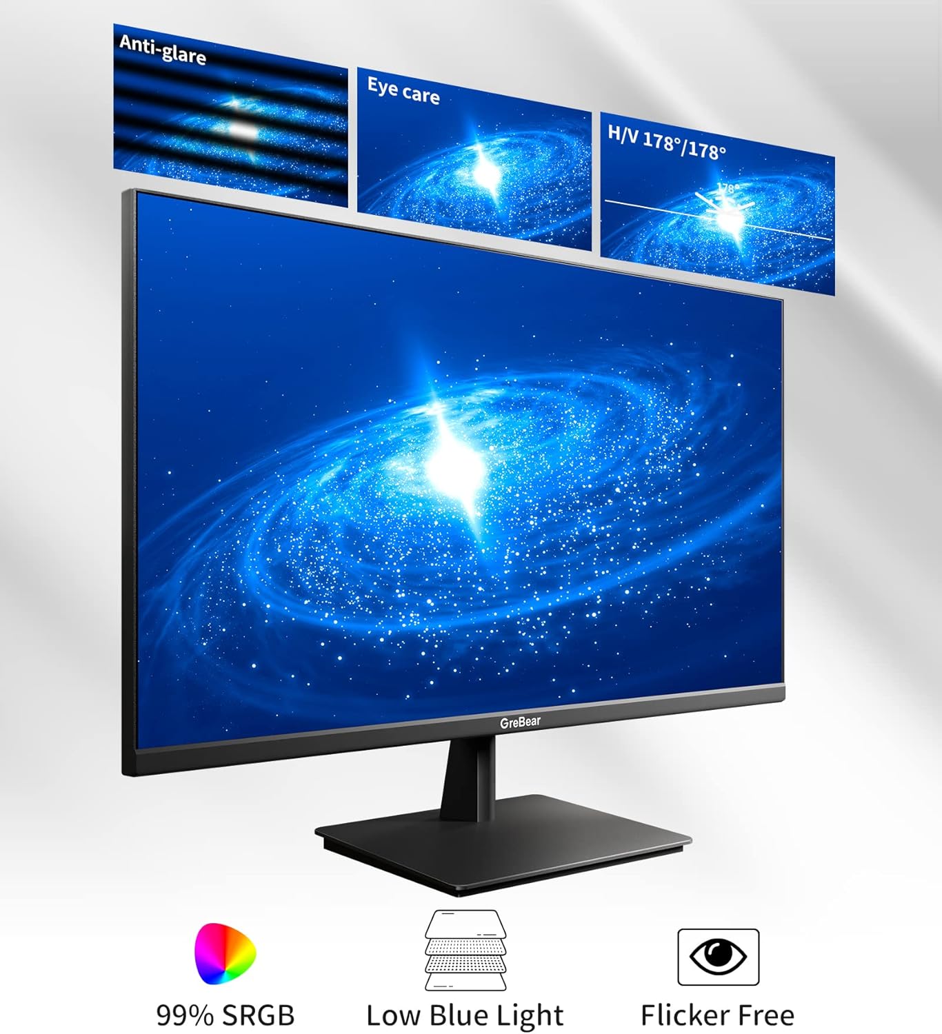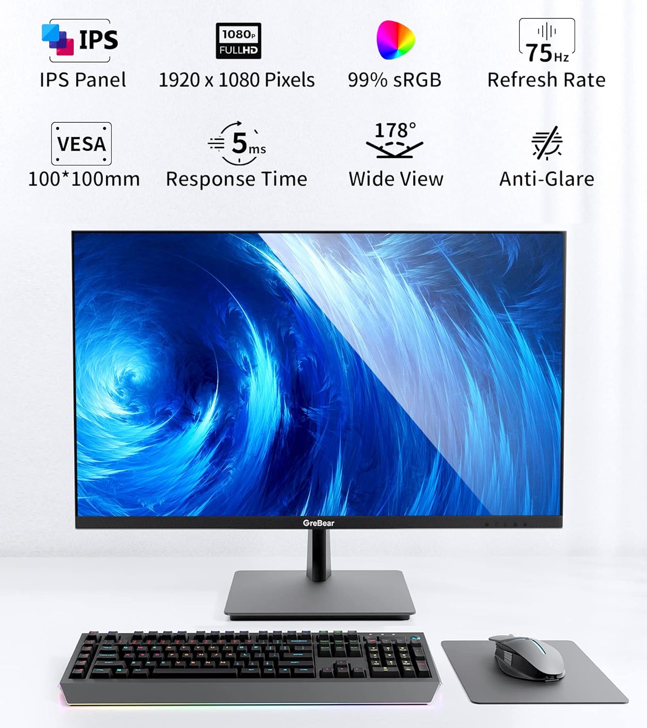 GreBear 27” computer monitor 178° IPS wide viewing angle panel gives you a perfect visual display with accurate and rich colors.