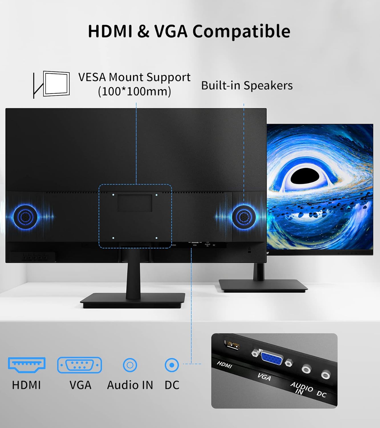 【Multiple Ports Desktop Monitor】GreBear 27inch monitor HDMI and VGA and Audio ports, easily connect your electronic devices Xbox, PC and laptops etc. With an accelerated refresh rate of up to 75Hz per port, high quality images and videos are output. Built-in speaker, output clear and attractive sound quality, making it perfect for home entertainment and office work