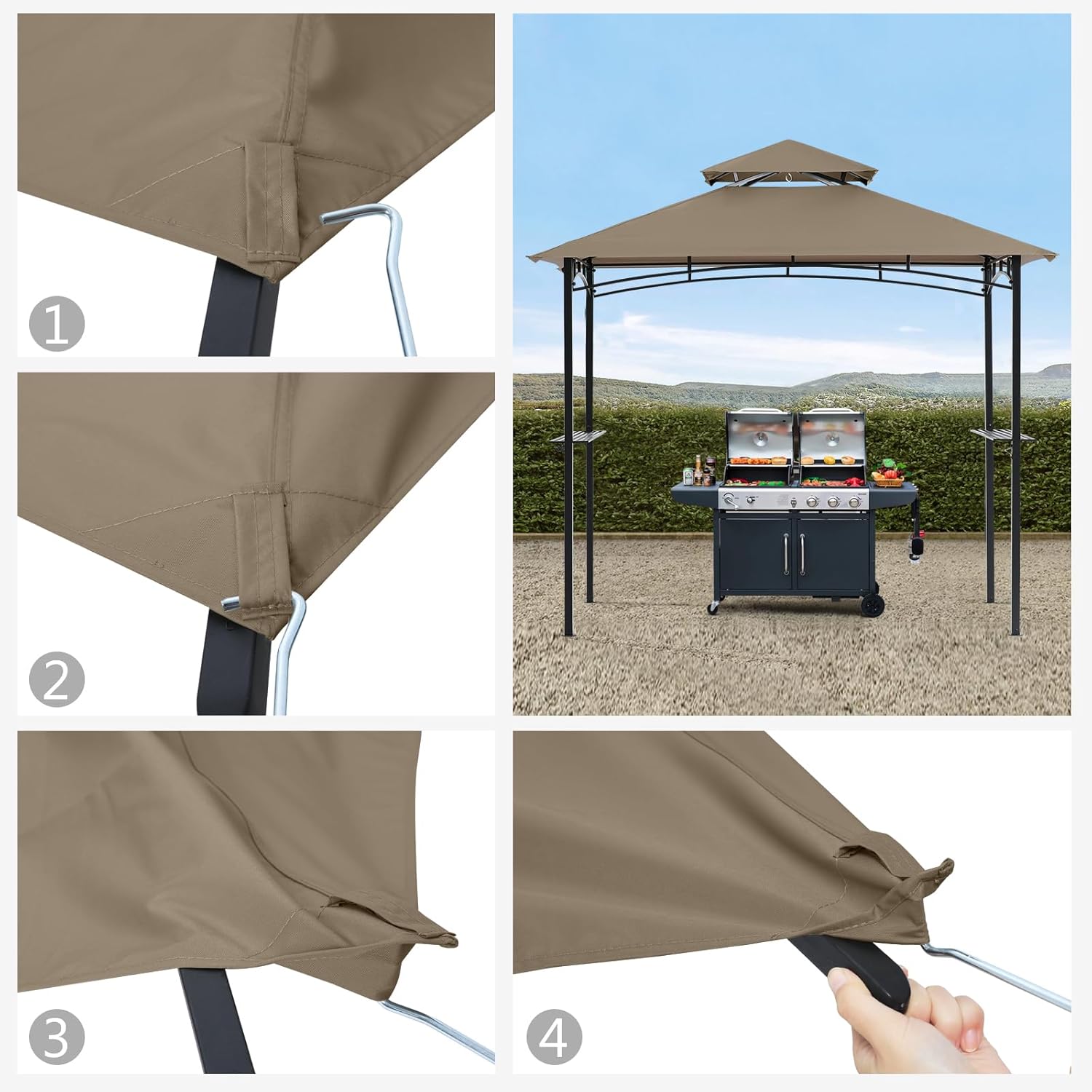 CAREFULLY CHECK: The fourth image shows the size for the canopy roof, please check carefully if it can fit your gazebo frame before placing order.