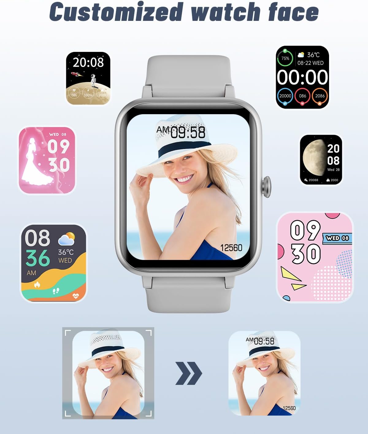 【Customized Watch Faces & IP68 Waterproof Smart Watch】- This smartwatch adopts 1.83 inch HD touch screen, and there are 100+ watch faces options in the app for you to customize your own style. You can also DIY the watch face with your favorite photo like pets photo or selfie. With IP68 waterproof standard, you can wear this watch with no worries while washing hands or sweating out.