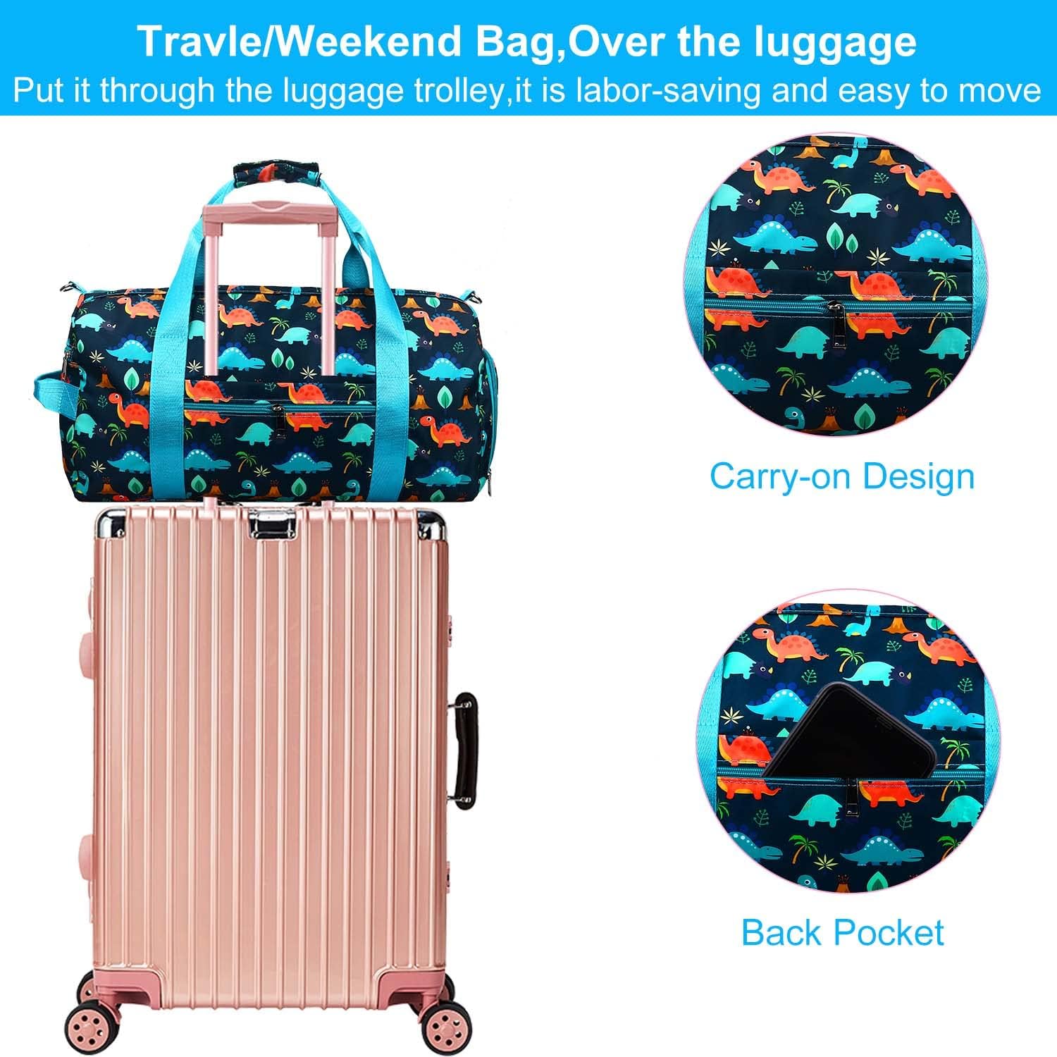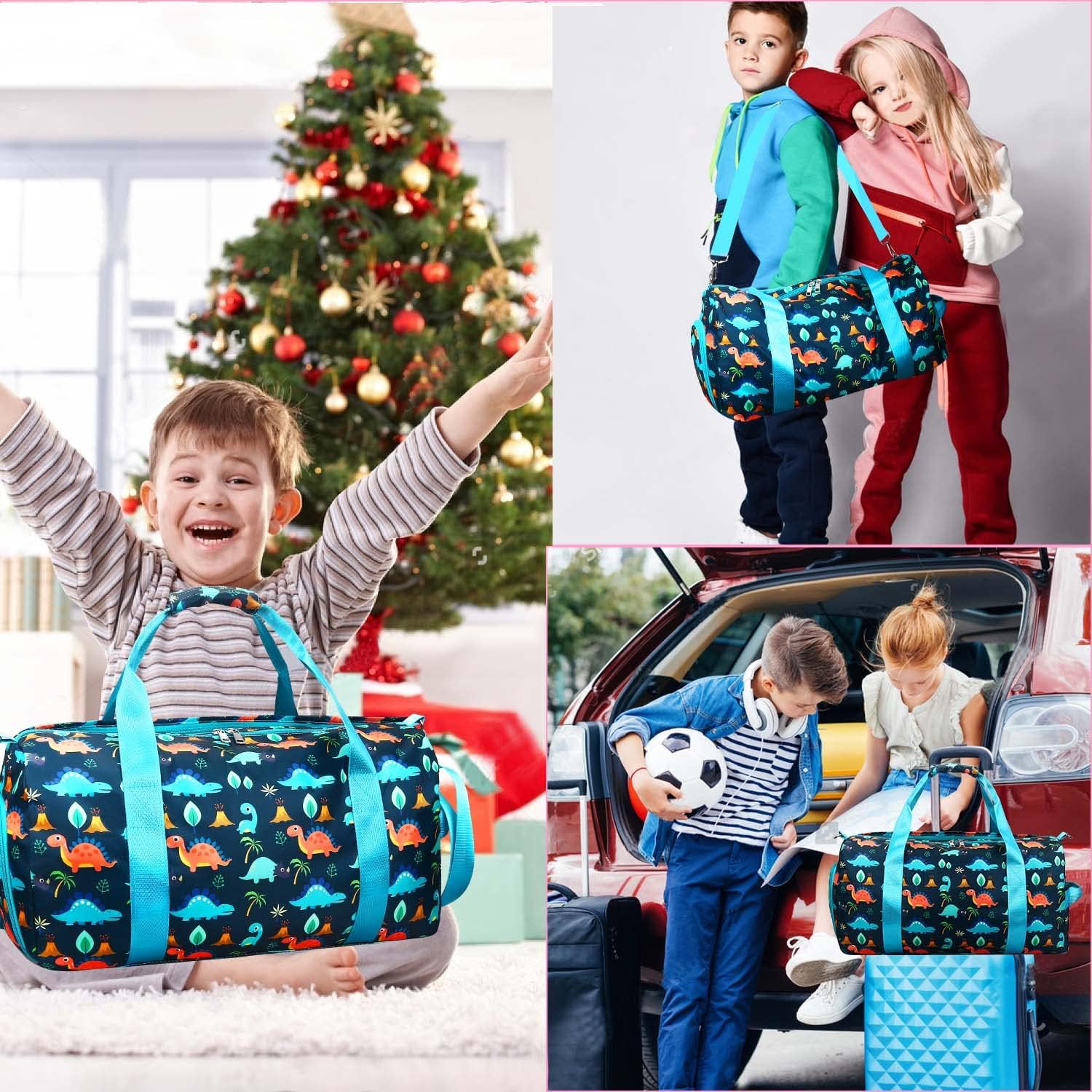 【Kids Duffle bag with Luggage Sleeve】That kids travel bag allows you to slide it over the standard handle of a rolling suitcase or luggage, make your flight or travel more easy and convenient.And One zippered pocket on the back to hold your smart phone, cards or passport. Each kid overnight bag comes with detachable shoulder strap, for those times when they want to sling it over their shoulder and be on their way.