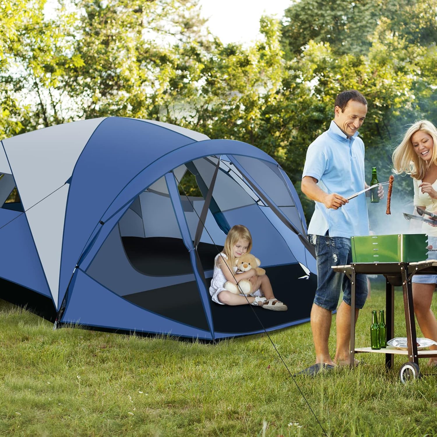 GYMAX Camping Tent, 6 Person 10’x 10’ Waterproof Windproof Family Tent with Rain Fly, Screen Room, Mesh Windows & Carrying Bag, Easy Set Up Double Layer Tent for Camping House Outdoor Dome Tent