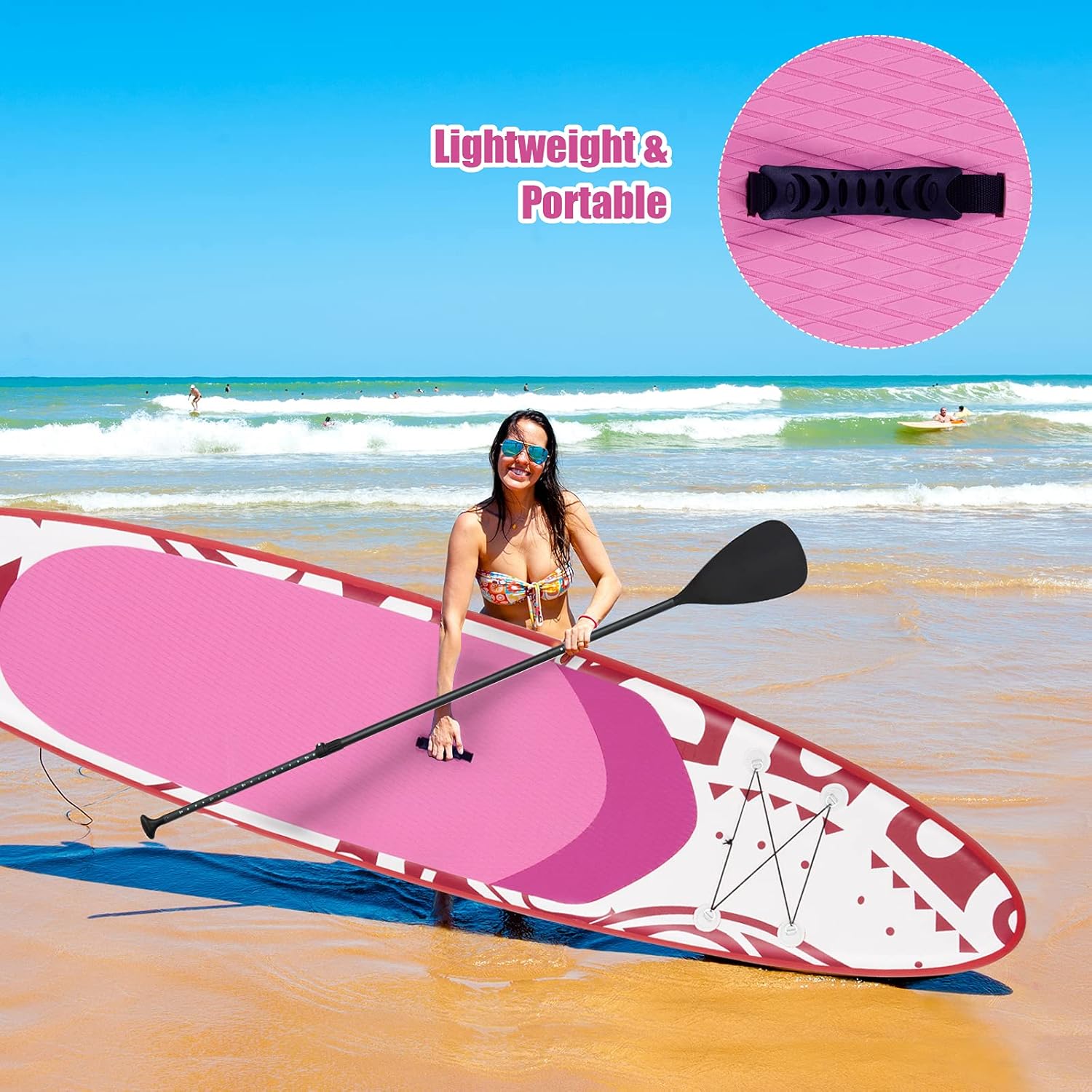GYMAX Inflatable Stand Up Paddleboard, 6.5″ Surfing Boarding with Hand Pump, Adjustable Paddle, Repair Kit, Carrying Bag & Removable Fin, Heavy Duty for Adult Beginner Teenager