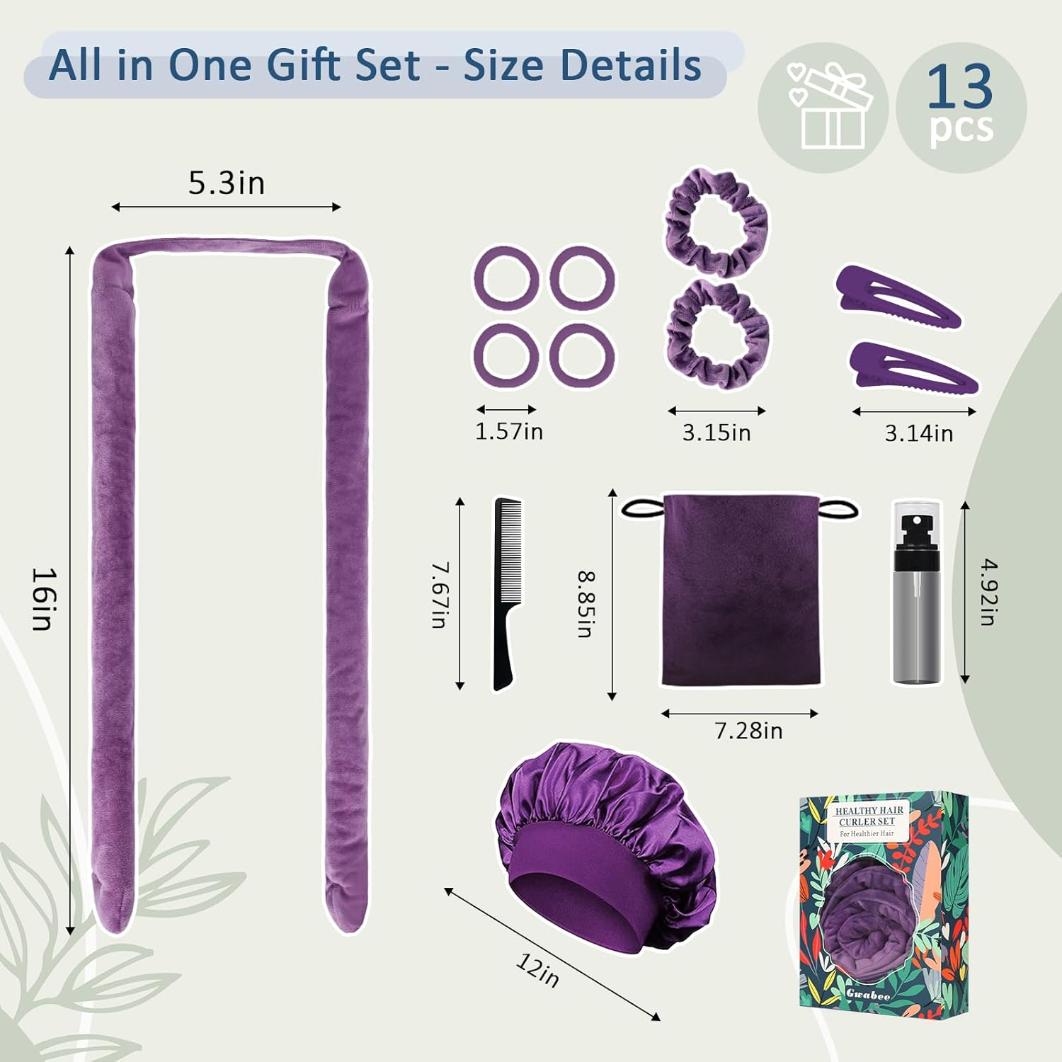 Hair Curlers to Sleep In, No Heat Curling Headband, Soft Overnight Curls Headband with Satin Bonnet, Non Heat Hair Curler Rollers Wrap Set for Women Girl Long Hair, 13 PCS with Gift Box -Purple