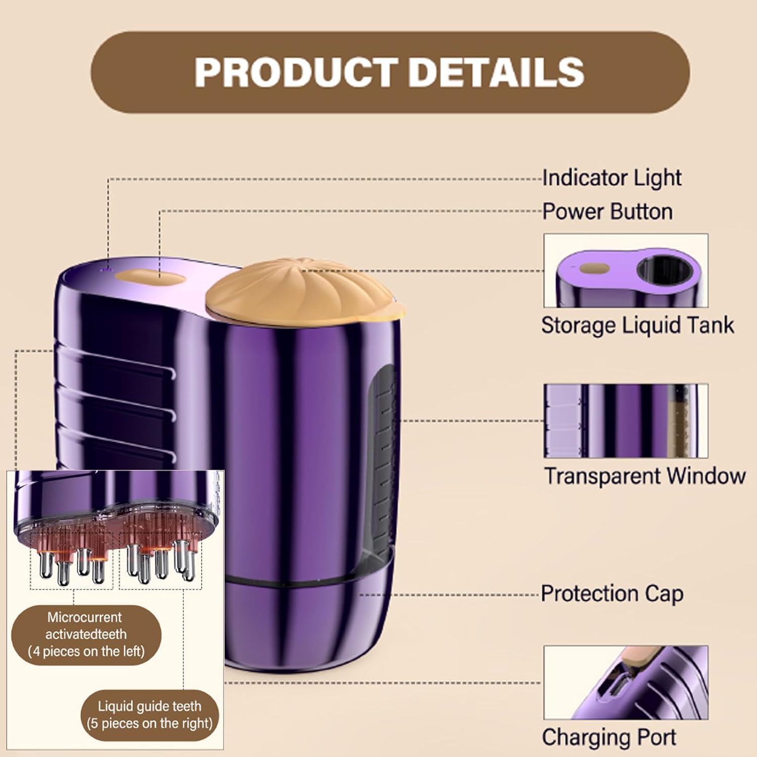 Hair Oiling Applicator + Scalp Massager 2 in 1, Dispenser for Essential Oil/Hair Treatment Growth/Serum, with USB-C/ 10ml Bottle, Hair Care Gift for Women Men Purple