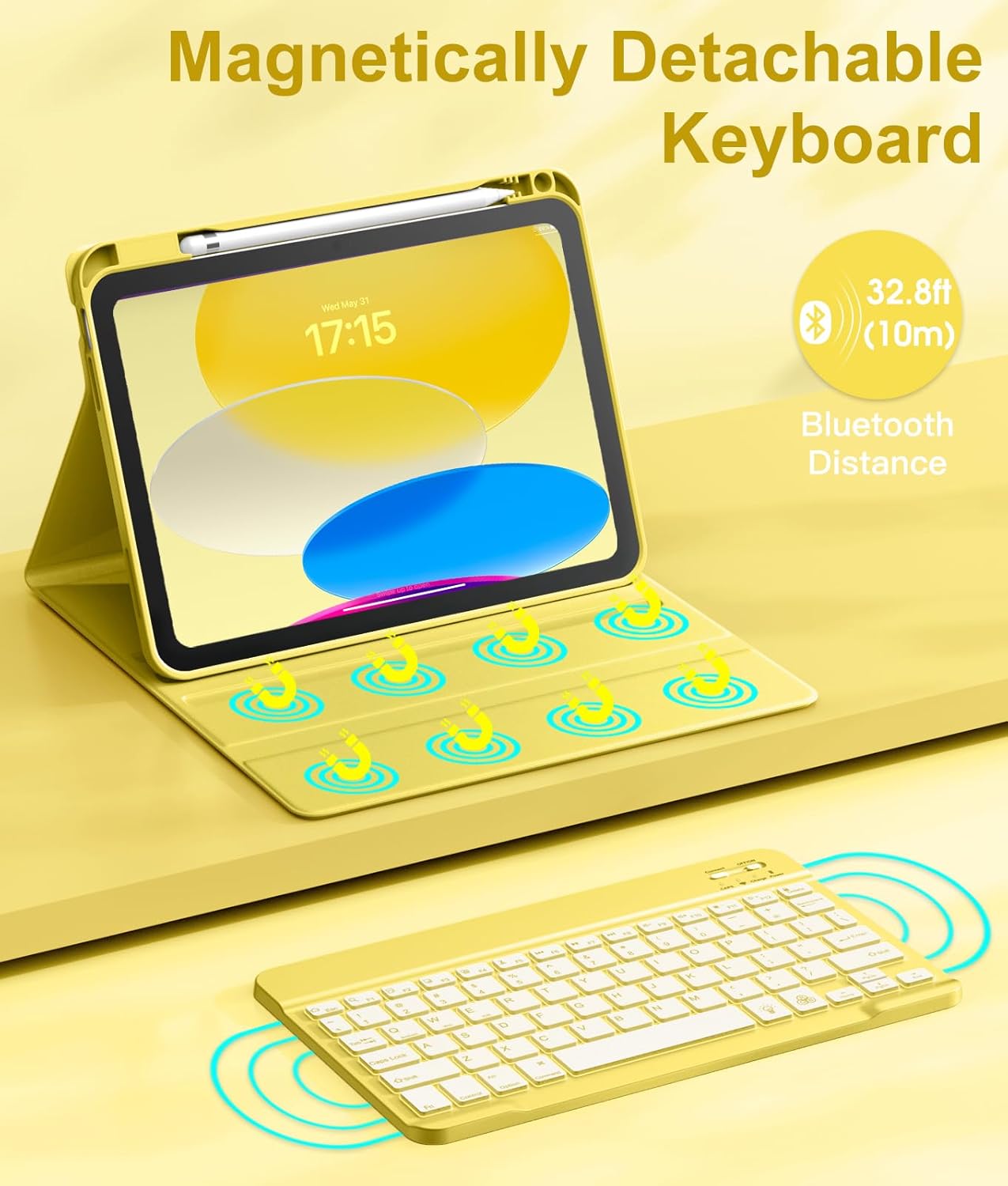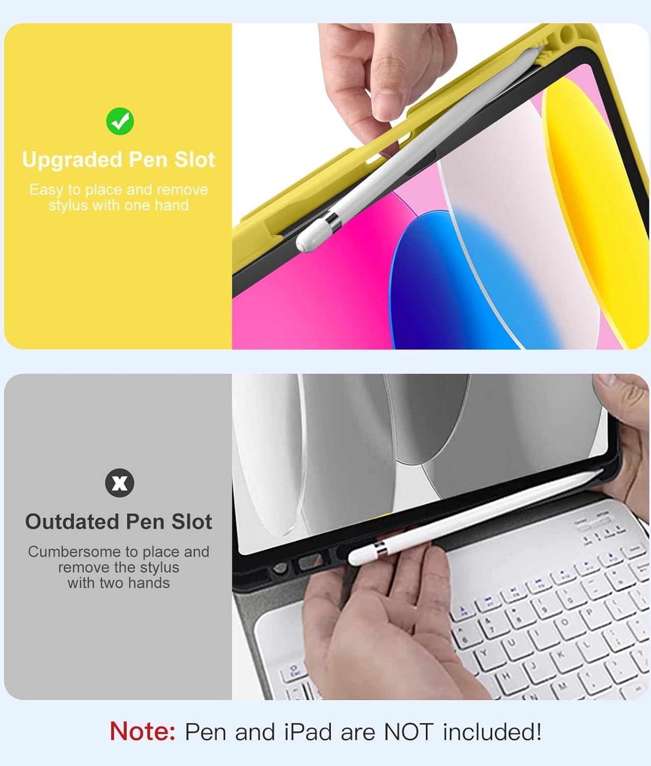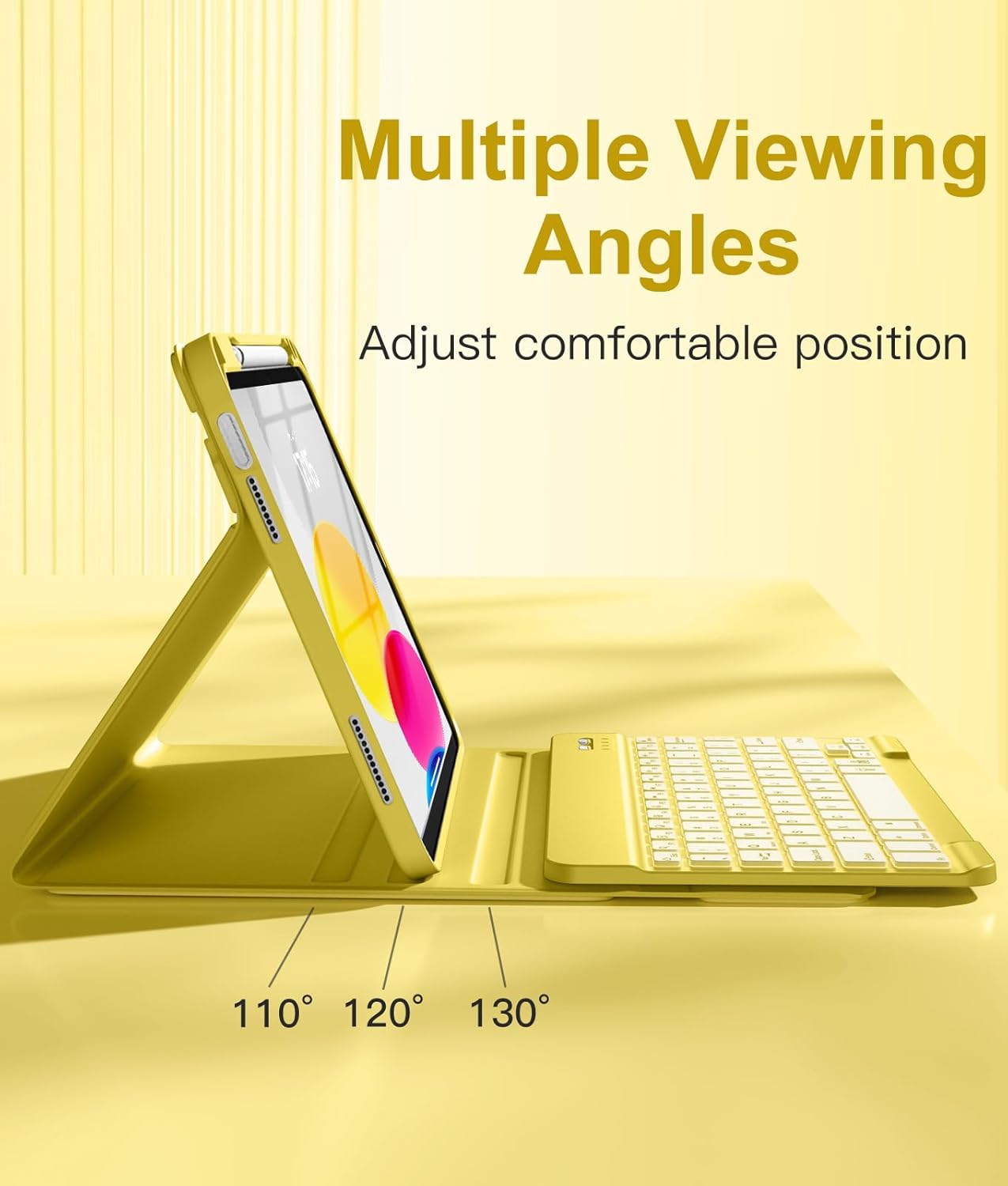 Hamile iPad 10th Generation Case with Keyboard 10.9 Inch – 7 Colors Backlit Wireless Detachable Folio Keyboard Cover with Pencil Holder for New iPad 10th Gen 2022 (Yellow)