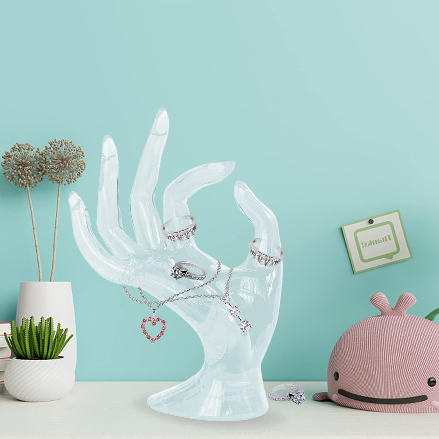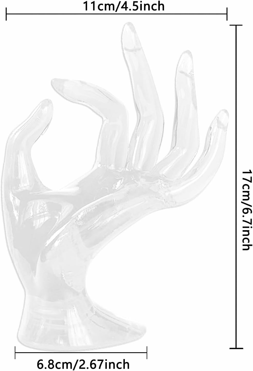 Hand Acrylic Jewelry Holder, Jewelry Display Holder, Female Mannequin Hand Jewelry Stand Support, Mannequin Hand Necklace Bracelet Ring Watch Holder for Home Organization,transparent white,2pcs