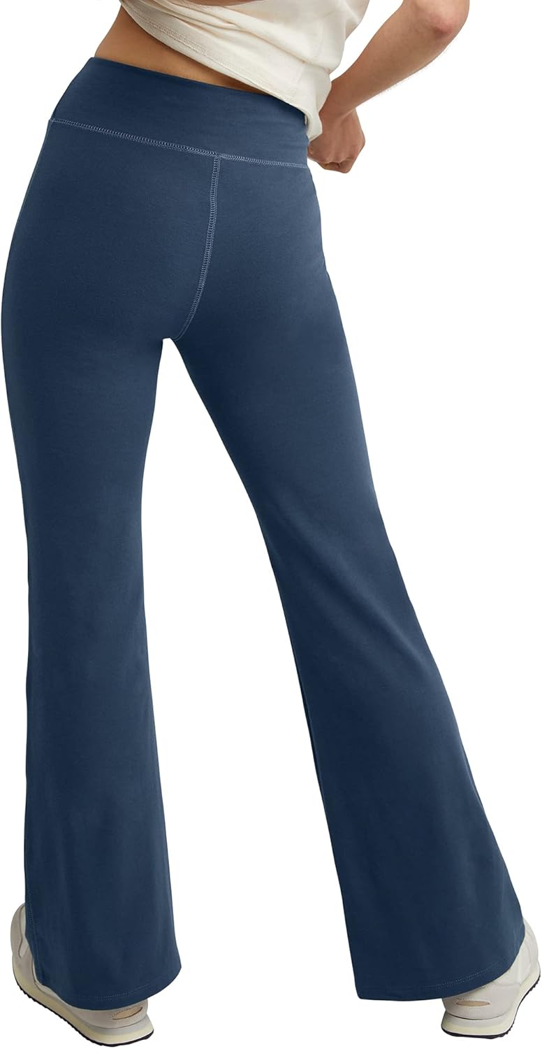 Feel good, look good. Hanes Originals flare leg pants have you covered. The comfort? That’s thanks to the cotton-rich blended fabric that’s expertly spun with a touch of spandex that makes moving oh-so-easy. The look? A wide, flat elastic band sits high on the waist for on-trend style, but it’s the dramatically flared legs that set these must-have pants apart. Pair with crop tops or your favorite tee and hit the streets with flair (or is that flare?)