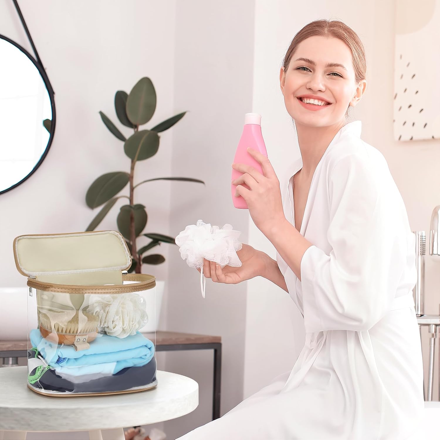 HAOGUAGUA Heavy Duty Leak Proof Clear Travel Bags for Toiletries, Transparent Makeup Cosmetic Bag with Zipper and Handle (1PCS GOLD, Large)
