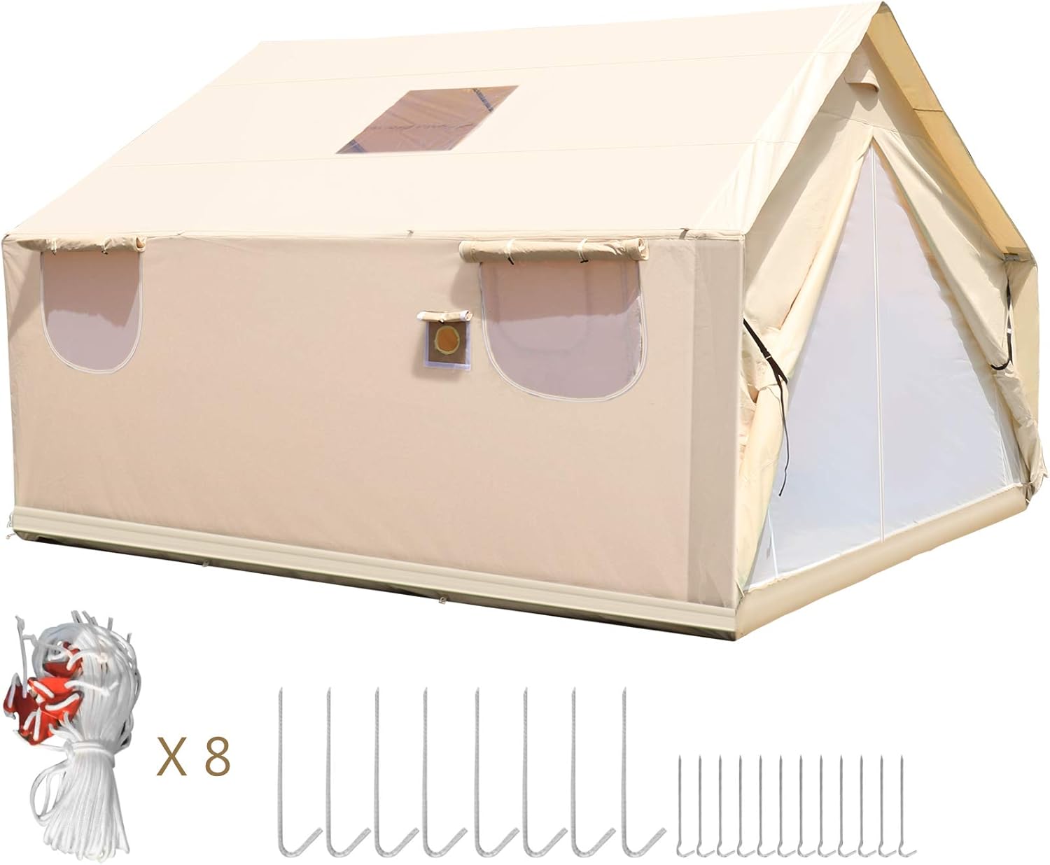 🎪🎪【Multifunctional & Breathable】: The large canvas tent boasts large rectangle distinctive windows, a top dormer with PVC storm flap, two vents on the front and back and two stove holes for safe cooking and heating, thus letting in natural light without losing the heat from your stove, for better ventilation, and clear views.