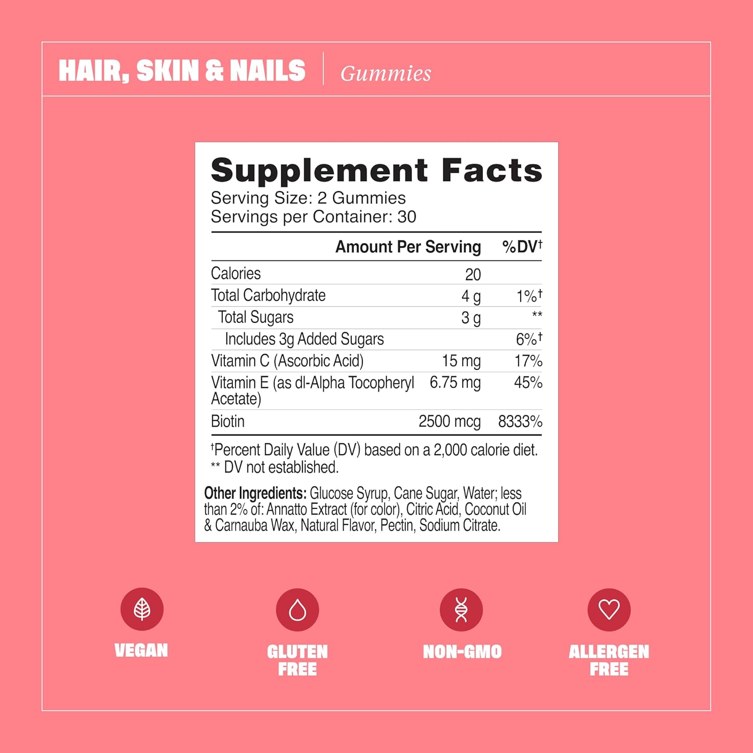WHAT’S INSIDE: Powered by Vitamins C and E plus 2500 mcg Biotin per serving.
