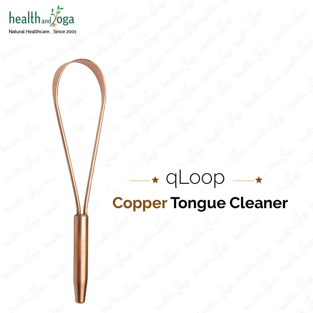 HealthAndYoga™ qLoop Copper Tongue Cleaner – Easy One Hand Use – Larger Surface Coverage – Ayurvedic Copper Health for Fresh Breath and Total Oral Hygiene (Single)