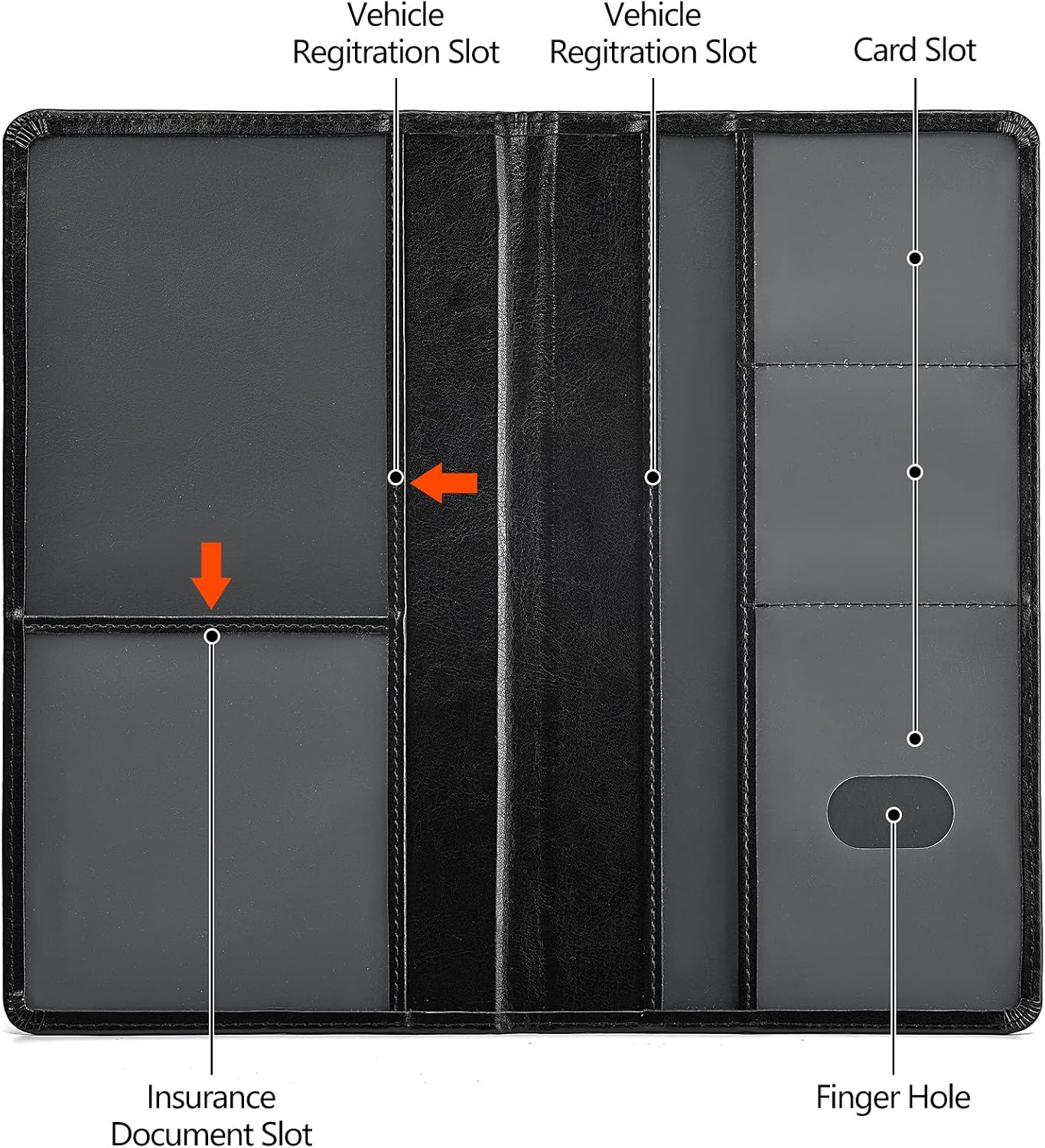 VERY PRACTICAL – And it has multi-function clear compartments which can organize various items very well. Clear and easy to read both documents when you open it up. 1 large pocket for insurance documents and 2 pockets for vehicle registration, 3 small pockets for driver’s license, ID cards, AAA cards, business cards, receipt, key contact information cards, etc. In short, it can fully meet your needs.