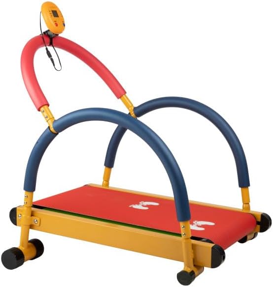 Show your little one how fun exercise can be with the Kids Gym Treadmill by Hey Play. No kids play room is complete without this small treadmill, which is made of sturdy powder-coated alloy steel with rails wrapped in protective foam for comfortable daily use. This kids fitness equipment is suitable for children ages 3 to 7 weighing up to 150-pounds, and is designed to help your little one learn about exercise and healthy living through play. Hey Play is your source for workout stuff for kids that is thoughtfully designed for fun. Important: Hey Play is committed to providing the consumer with the absolute best price and value on all of our products.