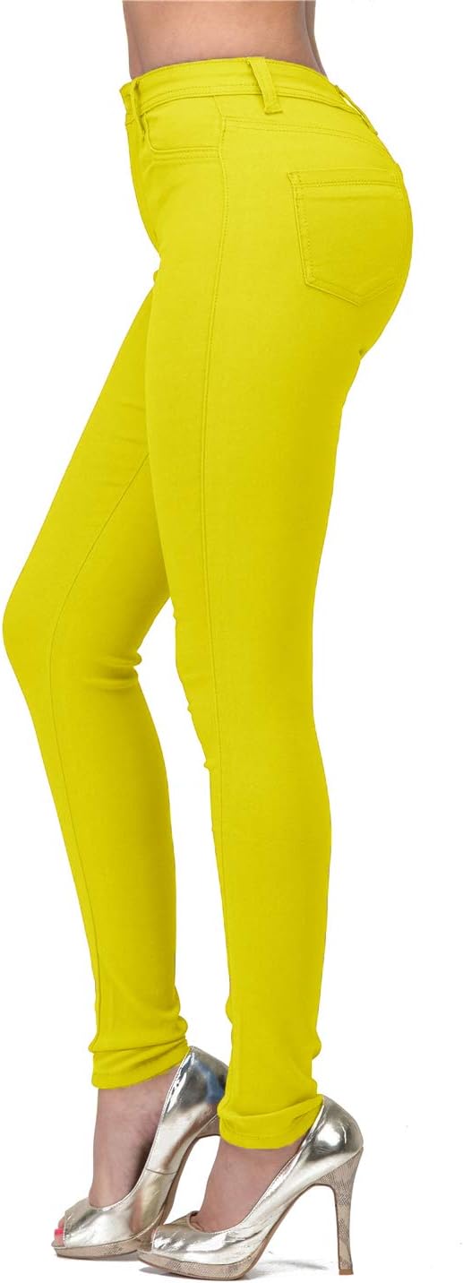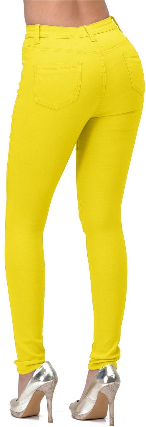 High Waisted-Rise Colored Stretch Skinny Destroyed Ripped Distressed Jeans for Women Olive Mustard RED