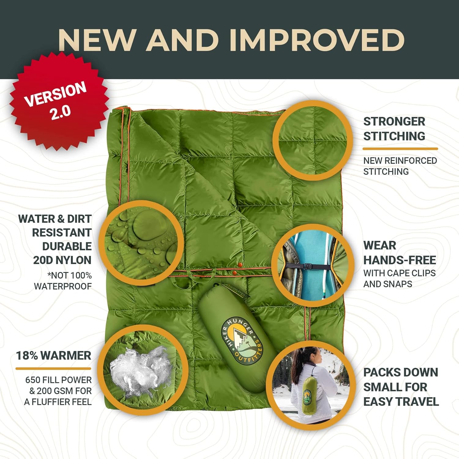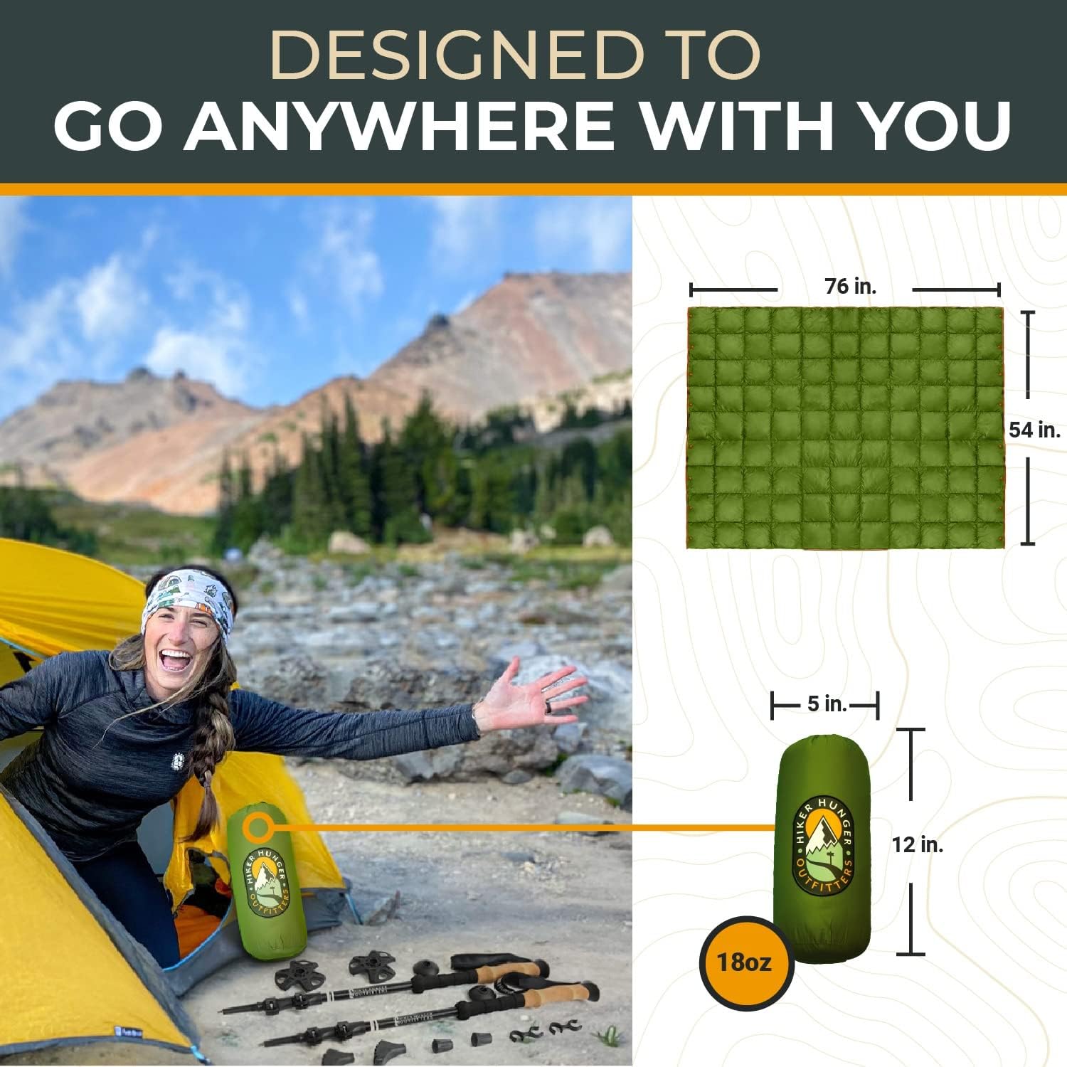 Hiker Hunger Outfitters Down Camping Blanket by USA Brand – Perfect Ultralight Backpacking Quilt – Lightweight & Warm – Moss Green