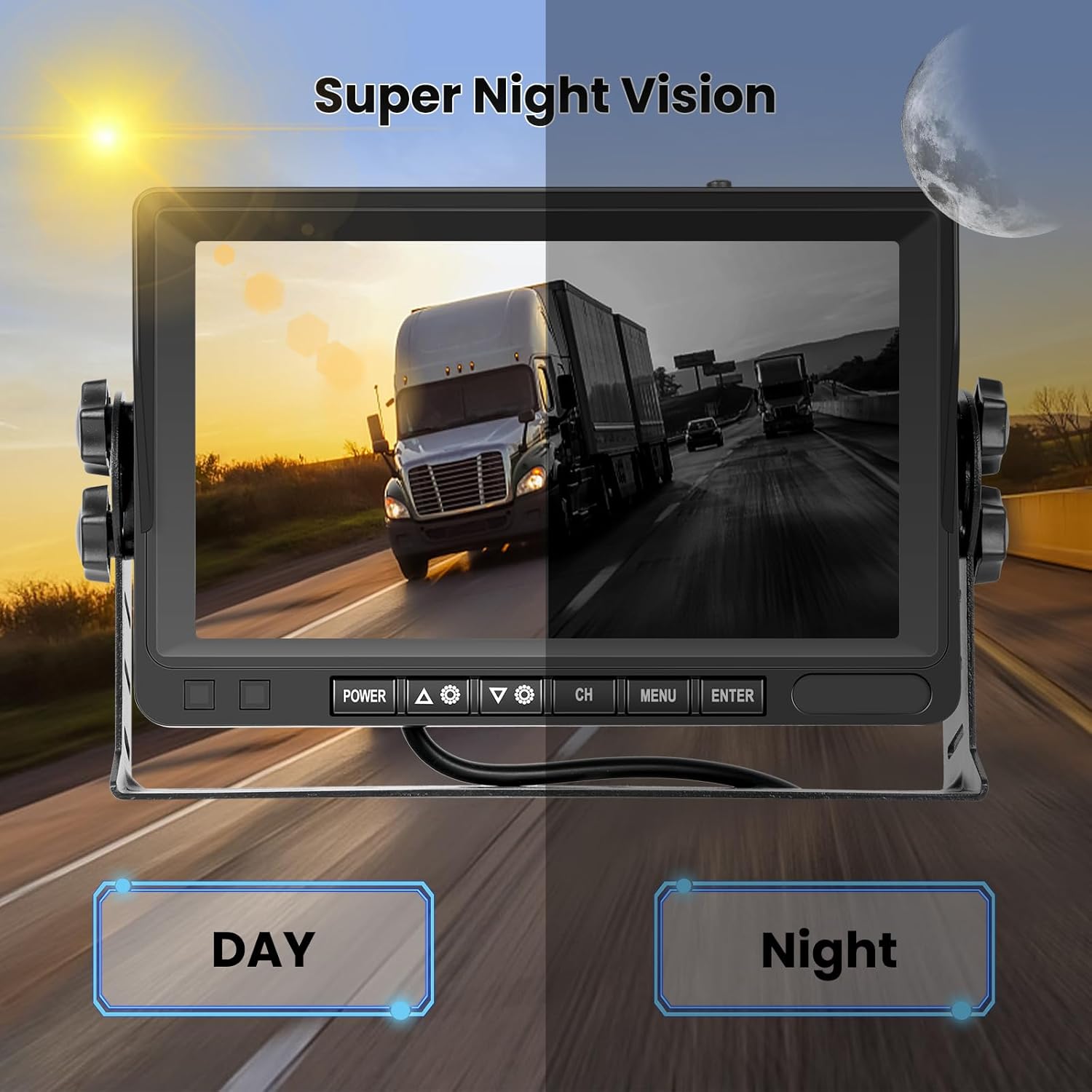 7 INCH IPS SCREEN & NIGHT VISION: 7 Inch backup camera monitor with 1024*600 IPS screen provides a clear picture, restoring the real-time image of the scene. Wireless reserve backup camera supports supper night version function, providing HD full color images during the day, and black and white image at night.