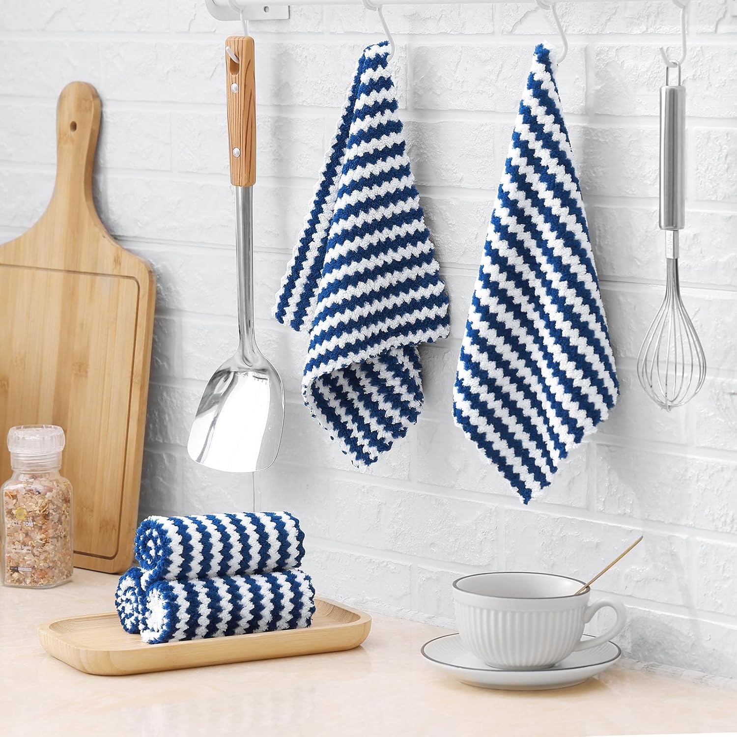 Homaxy 12 Pack Kitchen Dish Cloths, Ultra Soft and Absorbent Dish Towels, Reusable Fast Drying Microfiber Cleaning Cloth, Coral Velvet Wave Design Non-Linting, 10 x 10 inches, Navy Blue