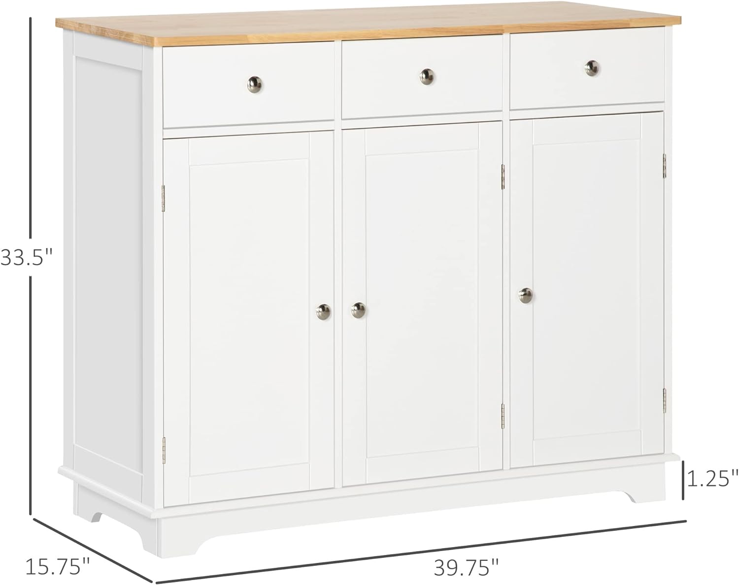 HOMCOM Sideboard with Solid Wood Countertop, Modern Kitchen Storage Cabinet, Coffee Bar Cabinet with 3 Drawers, Doors and Adjustable Shelf, White