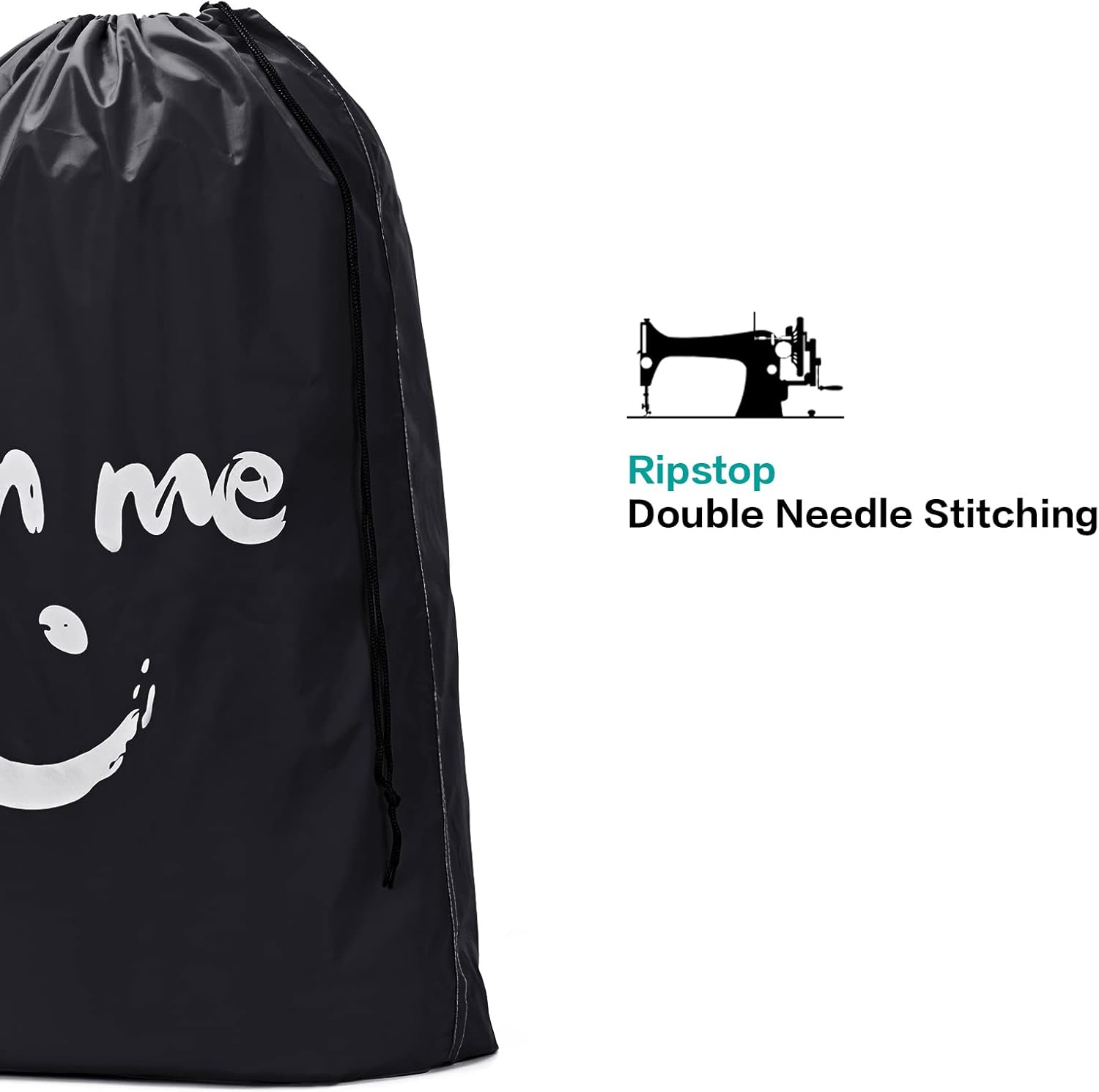 RIP-STOP AND PREVENT UNRAVEL – Extra-tough double-stitched seam construction and thick nylon material that prevents the bag tears from spreading; Plastic tips on the end of drawstring, which prevent it from unraveling after wash