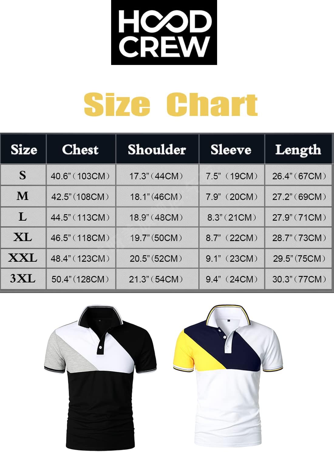 HOOD CREW Men’s Short Sleeve Polo Shirts Contrast Color Stylish Summer T Shirt