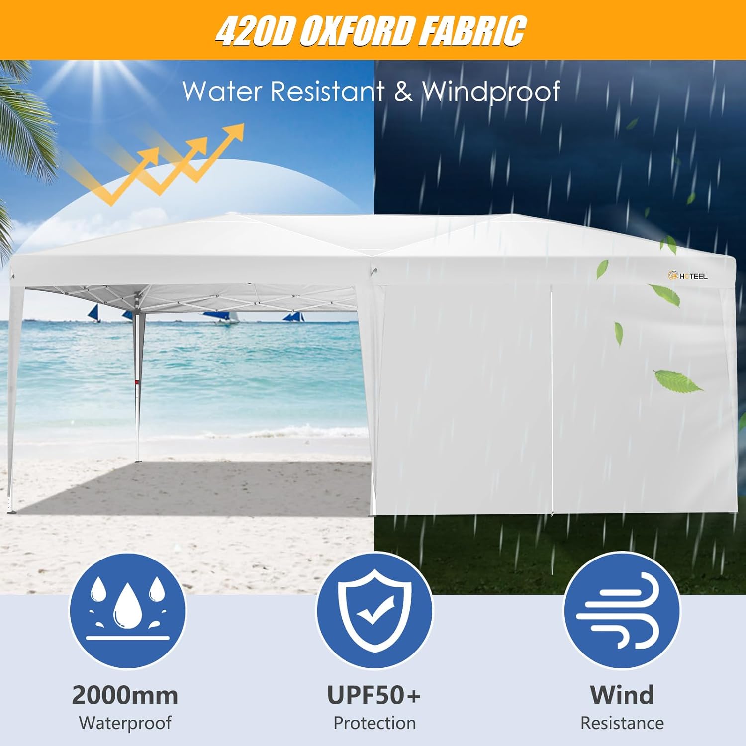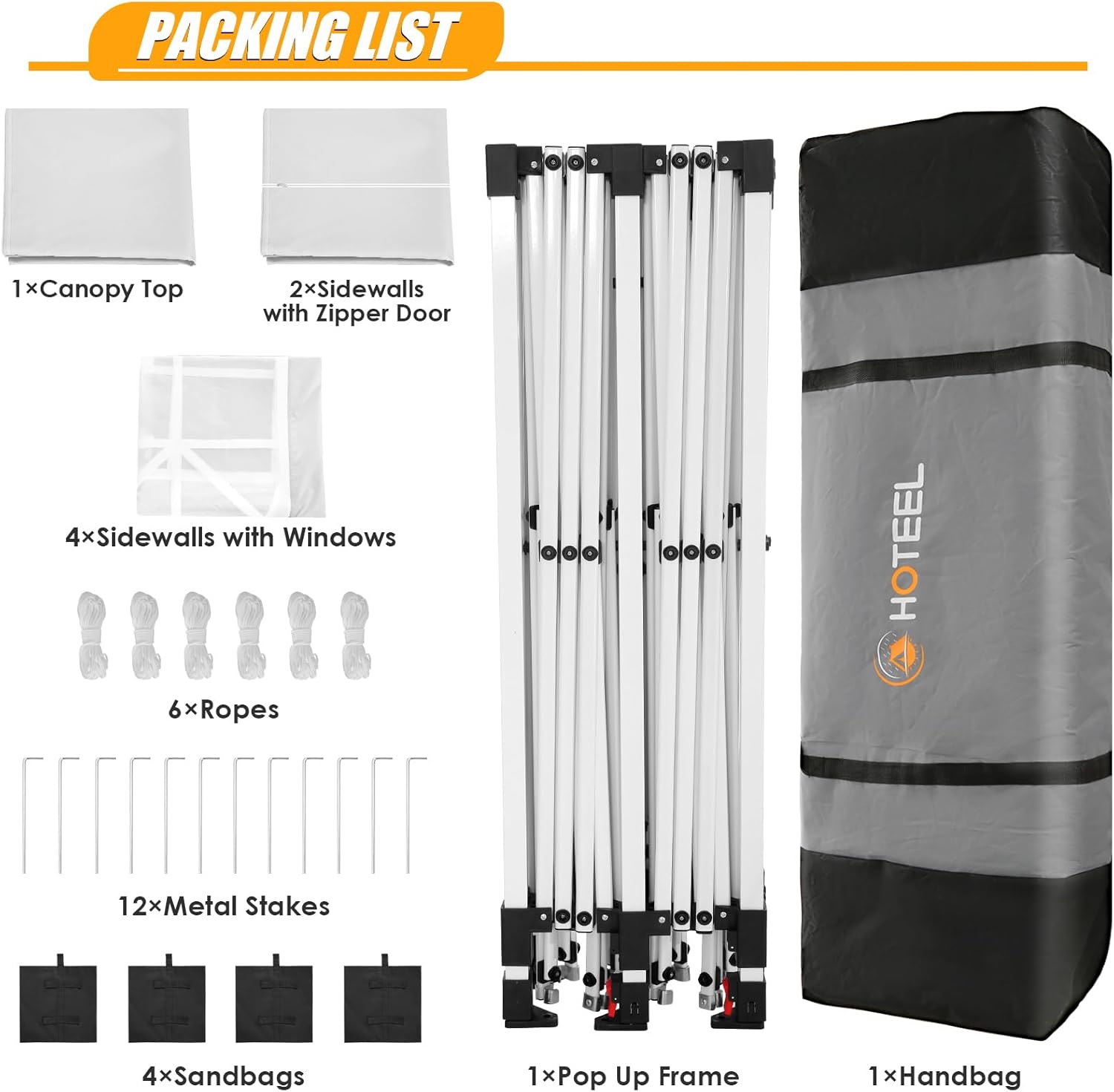 HOTEEL 10×20 Pop up Canopy Tent with Sidewalls, One Push Outdoor Waterproof Tents for Parties with Reinforce Rod, Sandbag, Easy Setup Event Tent Shelter for Backyard, Camping, Wedding, Market, White