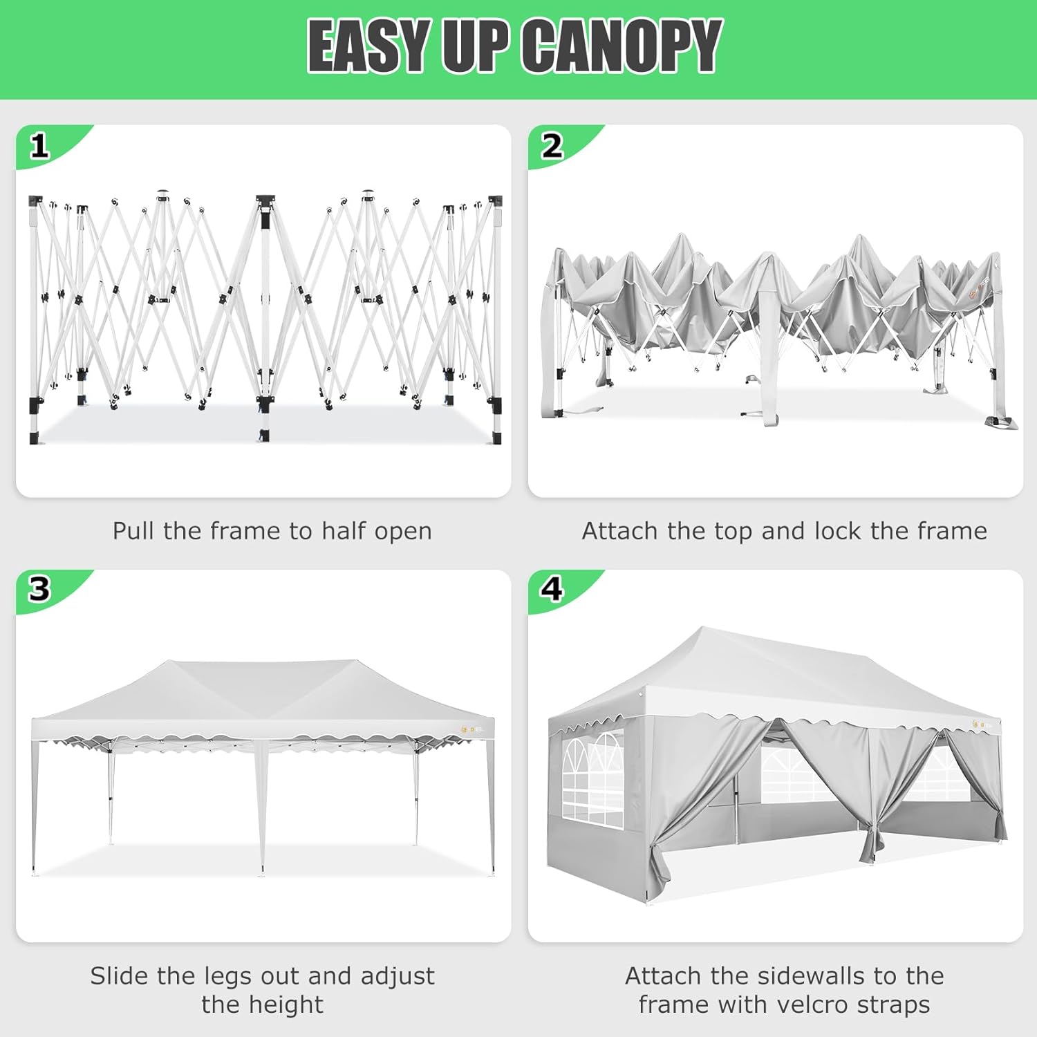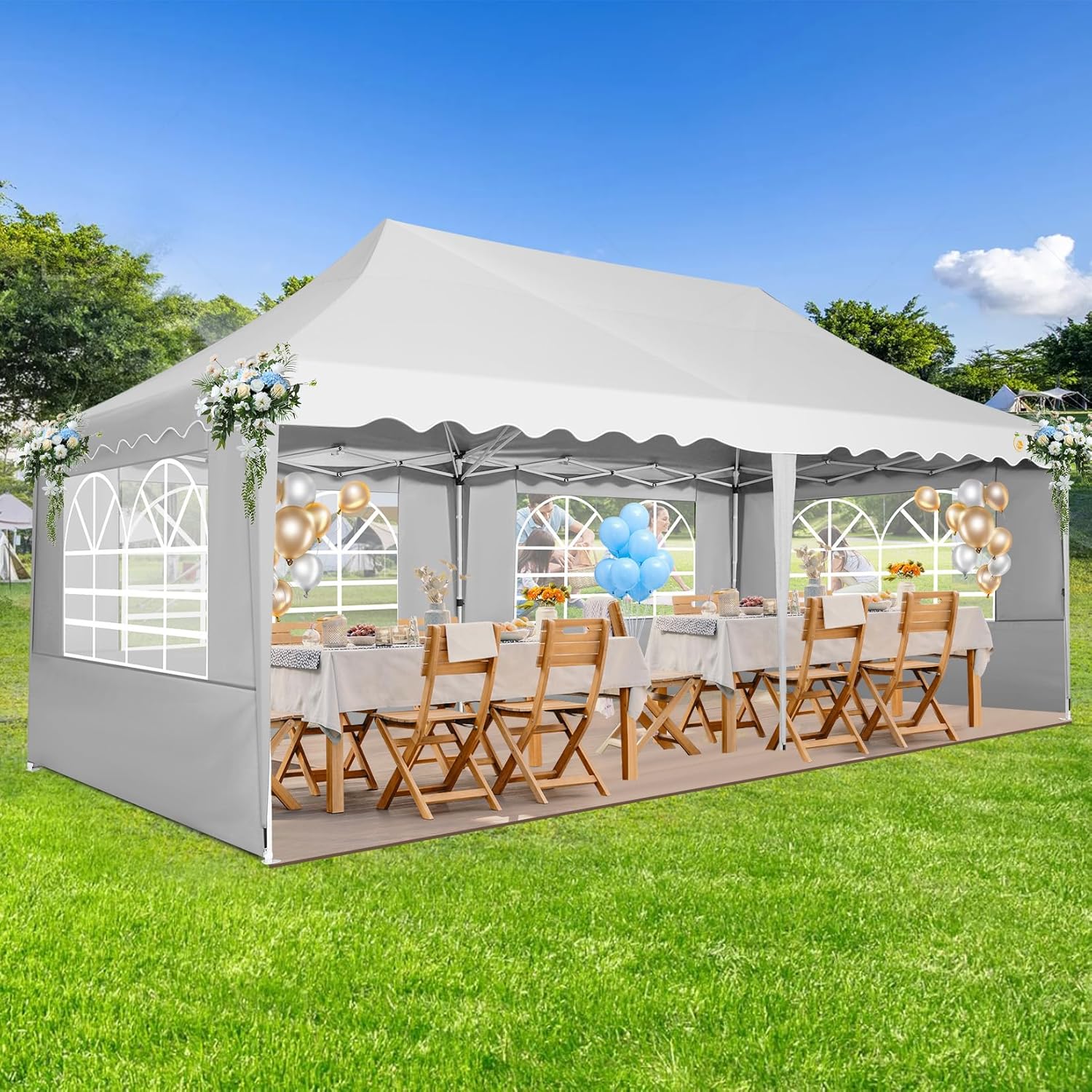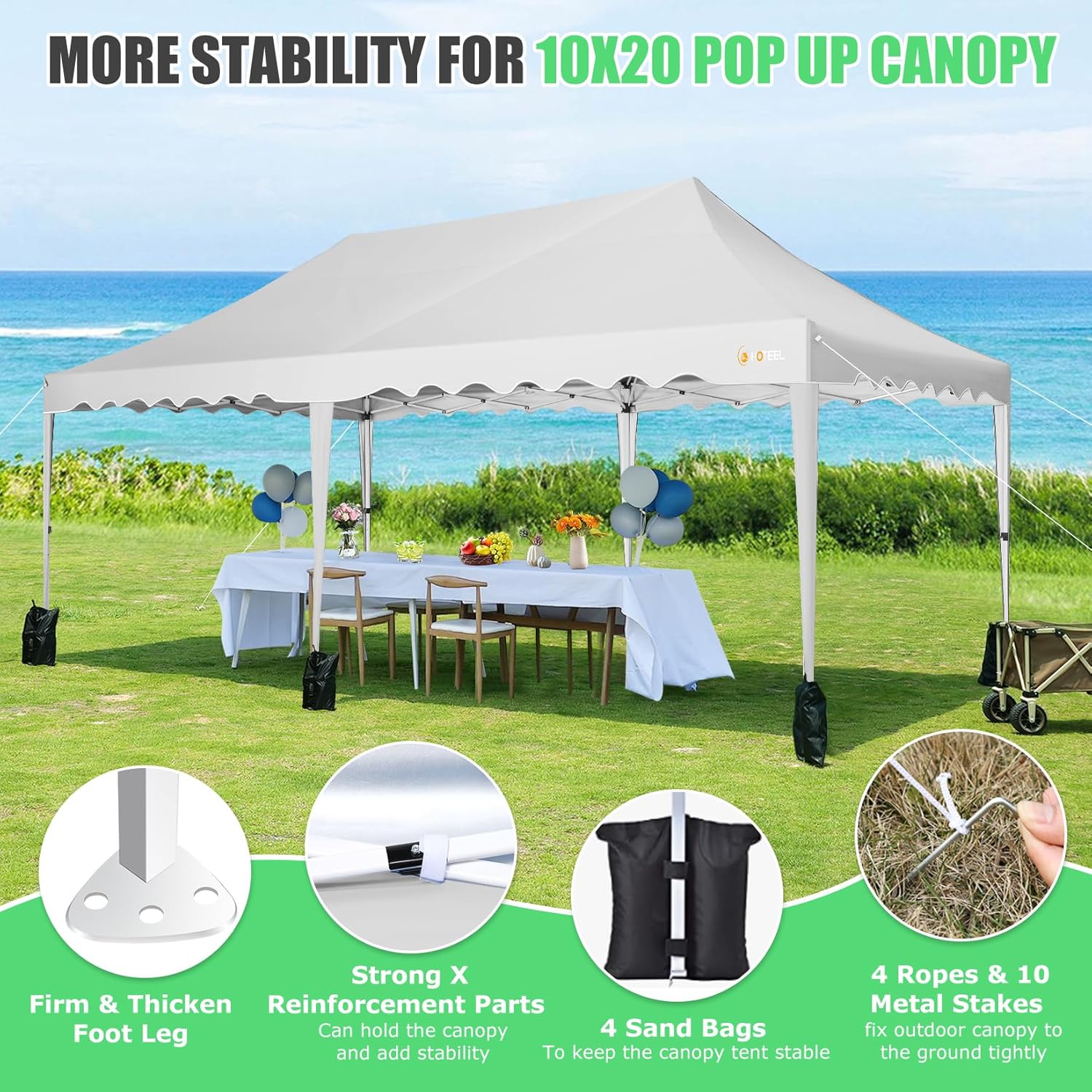 HOTEEL 10×20 Pop Up Canopy Tents for Parties, Outdoor Tent with 6 Sidewalls & Wheeled Bag & 4 Sandbags, Easy Setup for Wedding, Patio Events, Commercial, Party -Waterproof and UV50+ Protection, White