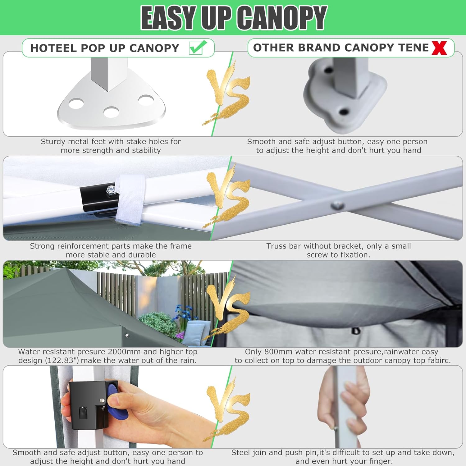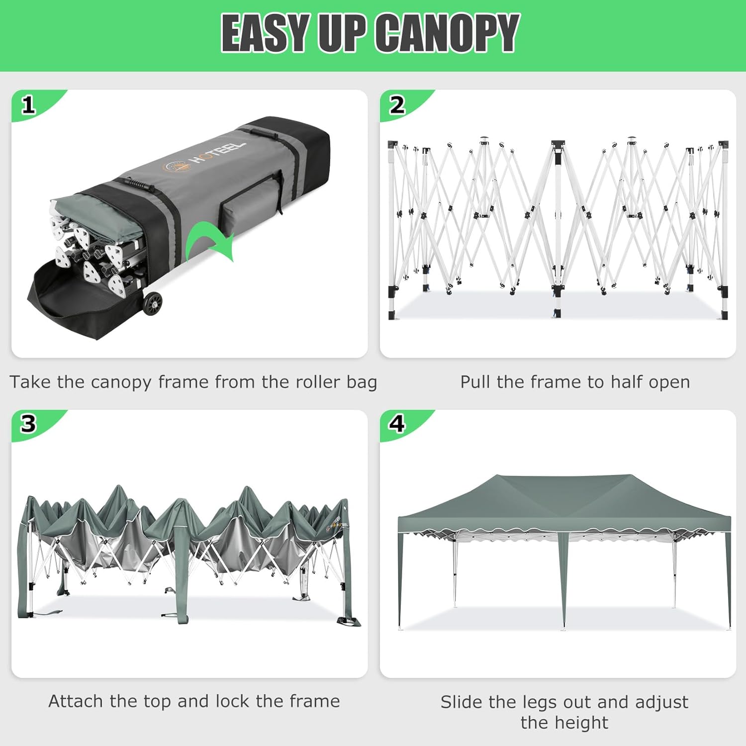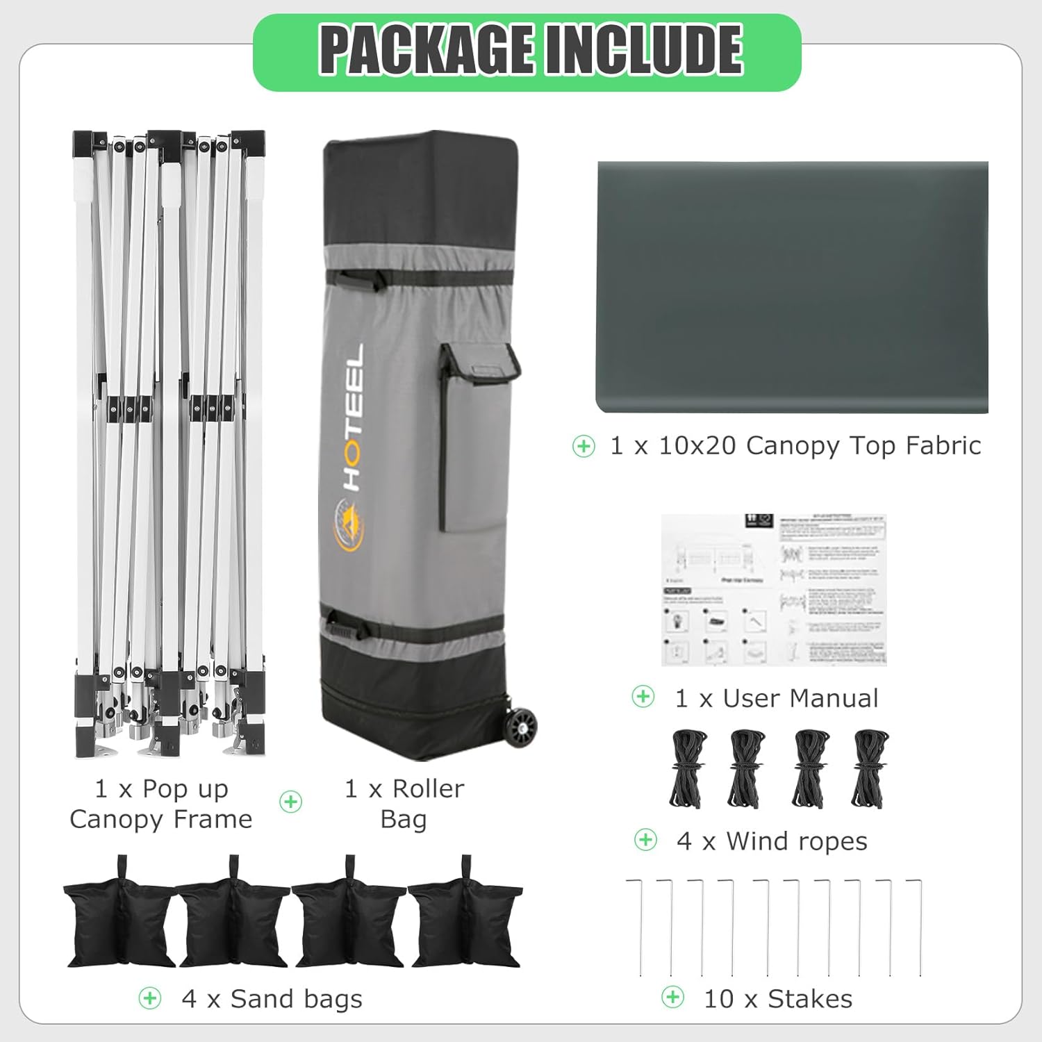 HOTEEL 10×20 Pop Up Canopy Tents for Parties, Outdoor Tent with Wheeled Bag & 4 Sandbags, Easy Setup Shelter Gazebo for Wedding, Patio Events, Commercial, Party -Waterproof and UV50+ Protection, Grey