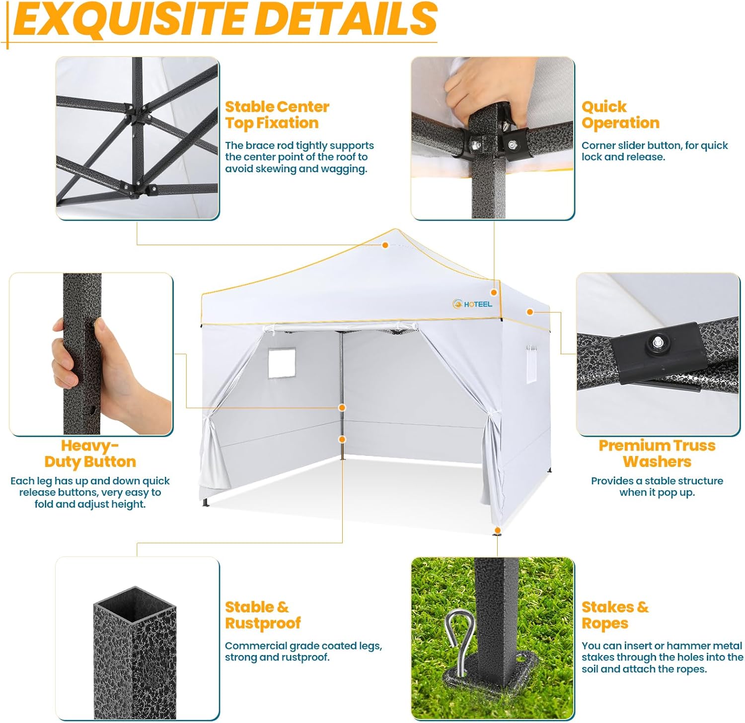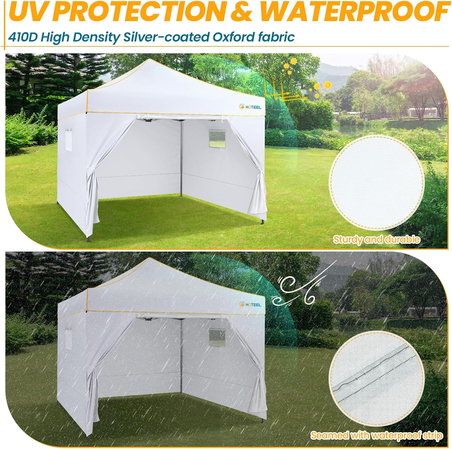 HOTEEL Canopy Tent 10×10 Heavy Duty Pop Up Canopy Tent Event Commercial Instant Canopy with 4 Sidewalls, Outdoor Canopy Waterproof Portable Vendor Tent for Parties, Backyard, Camping, UV 50+, White