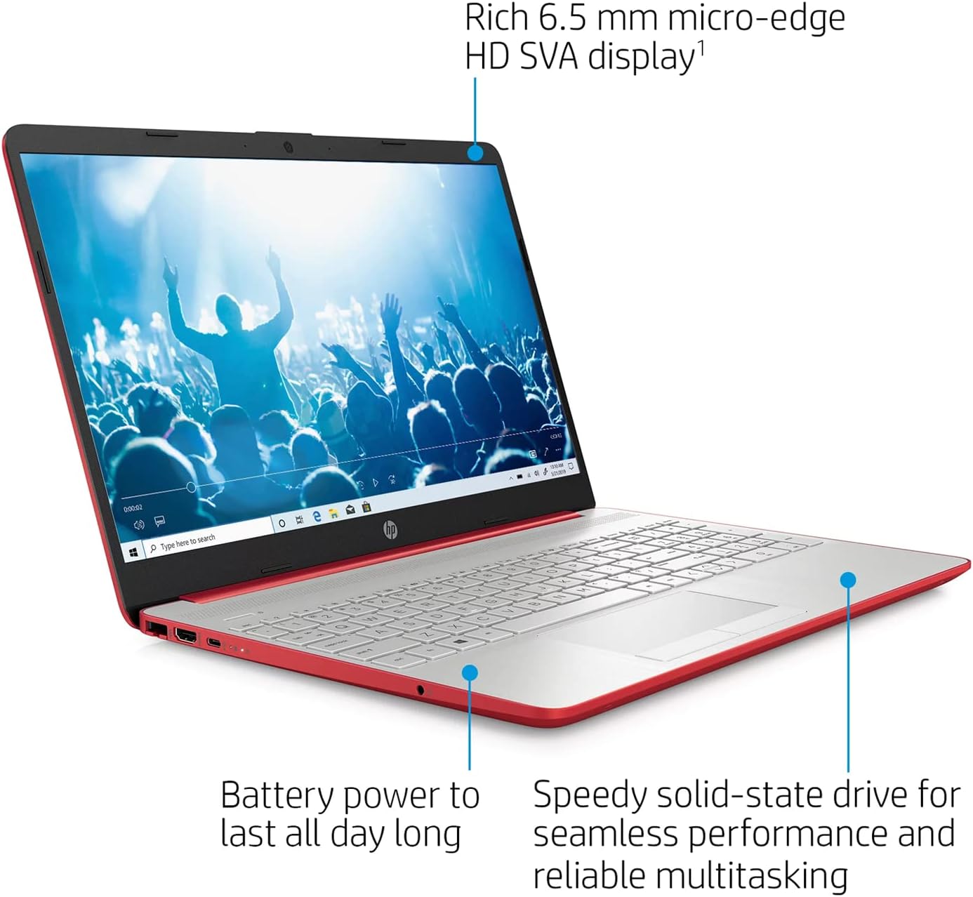 Processor Family Intel Pentium Silver Processor Processor Model N5030 Processor Cache Installed 4MB L2 Screen-To-Body Ratio 81.2% Product Primary Color Scarlet Red Touchscreen No Usage Everyday computing Audio Features Dual Speakers Battery Type 3-cell, 41 Wh Li-ion Camera HP TrueVision 720p HD camera with integrated dual array digital microphones Display Bezel micro-edge Display Surface Treatment BrightView Graphics Intel UHD Graphics Keyboard Full-size, natural silver keyboard with numeric keypad
