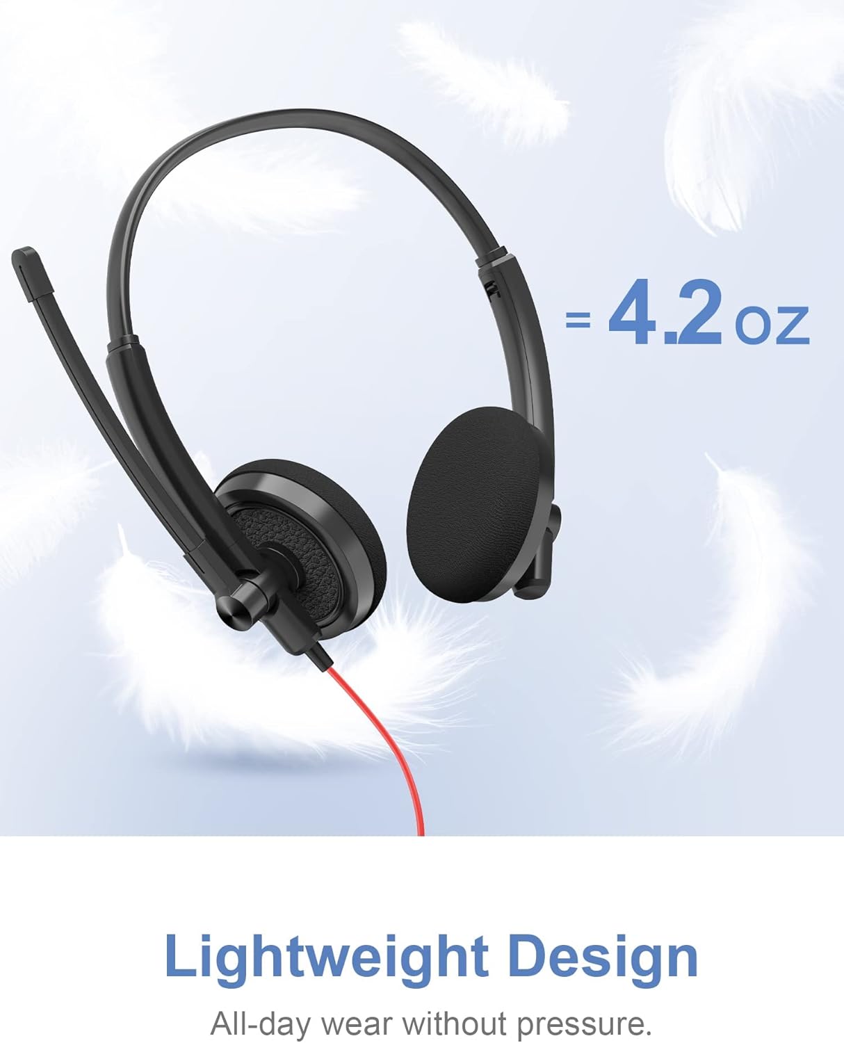 HROEENOI Premium USB Wired Headset with Noise-Cancelling Microphone, Ideal for PC, Laptop, Zoom Calls, Skype Meetings, Call Centers, and Home Office Use with In-Line Controls for Volume & Mic Mute