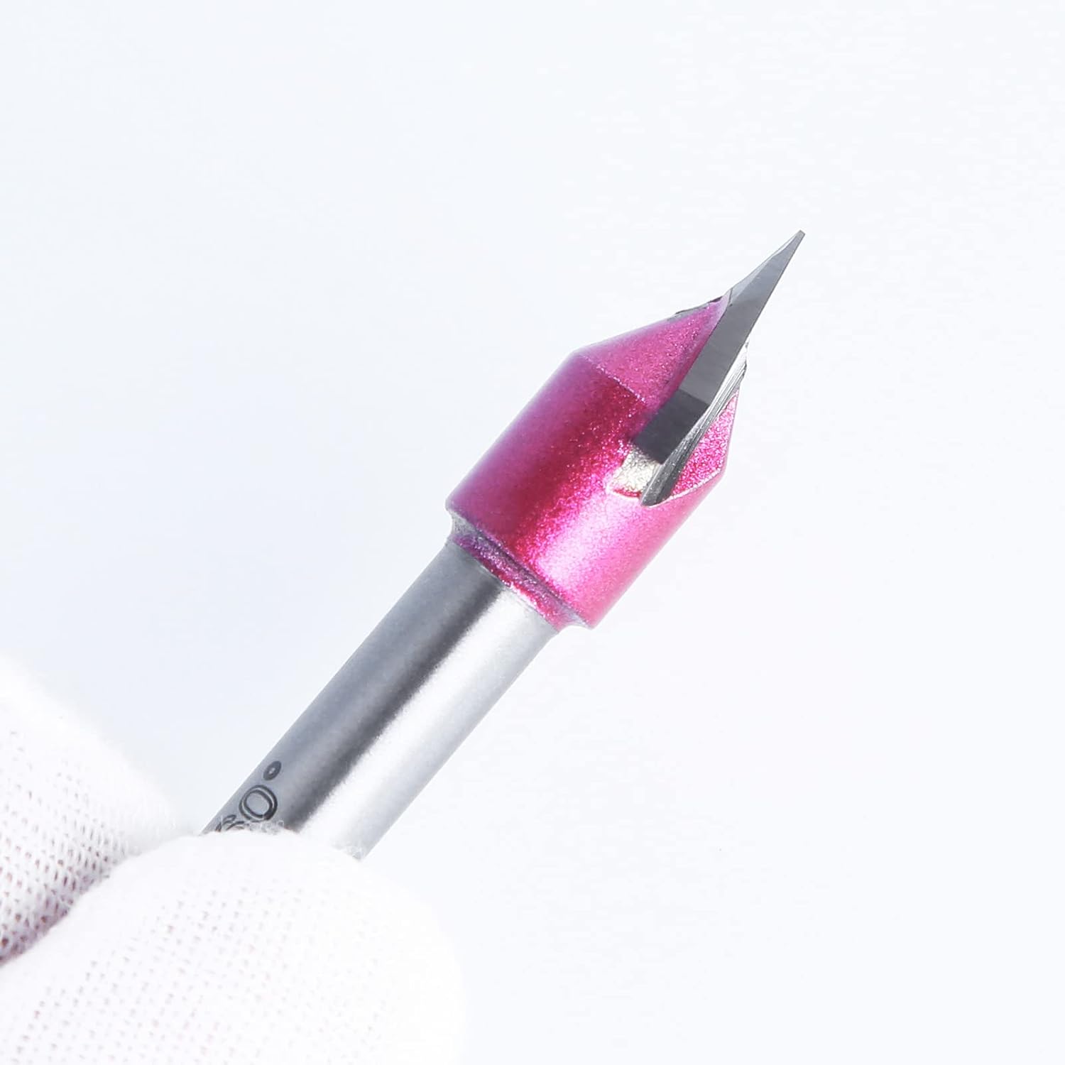 Ideal for making signs and adding decorative accents to furniture and plaques, HUHAO “V” grooving bits are designed to cut deep or shallow “V” grooves.