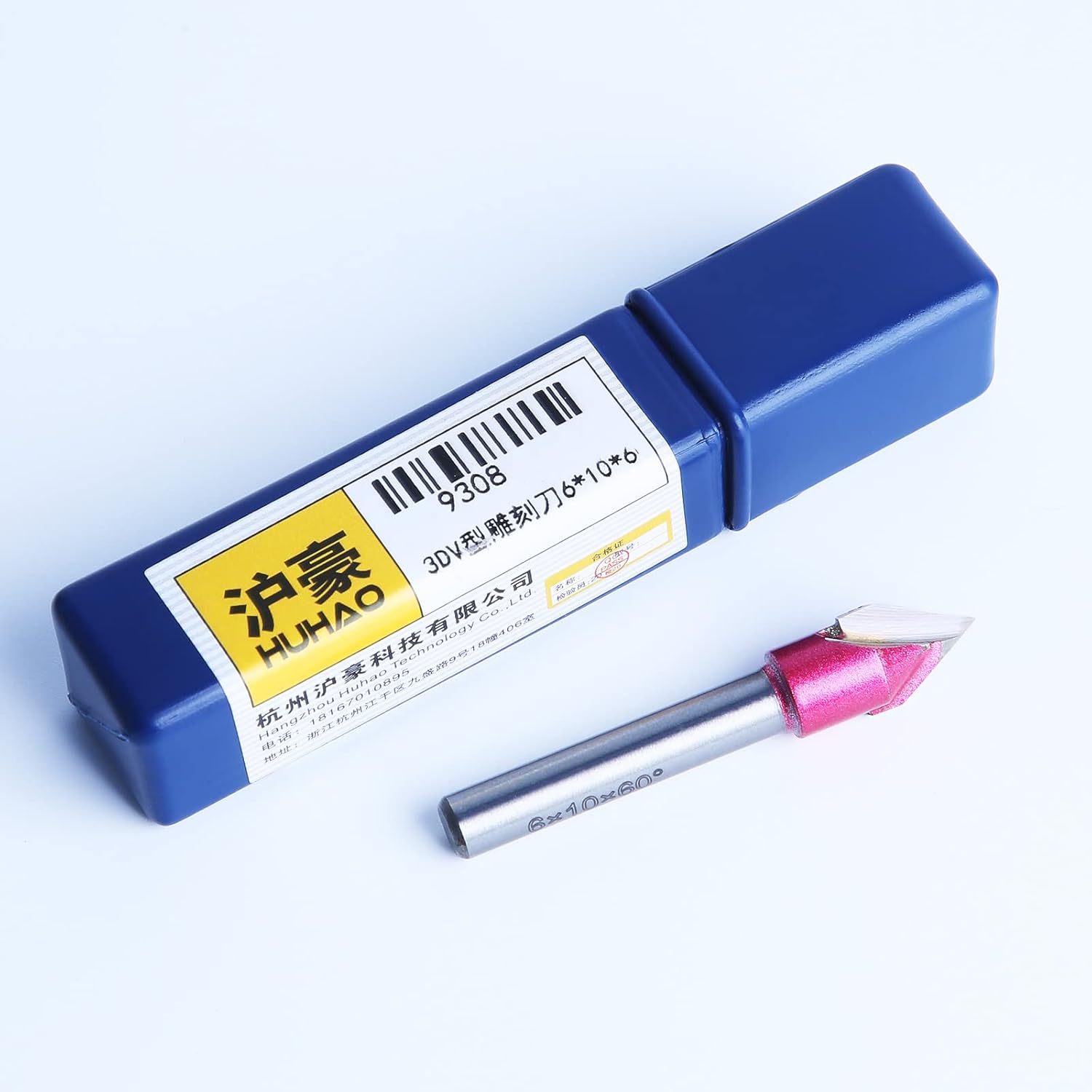 HUHAO 1PCS Router Bits V-Groove 60-Degree 10mm Cutting Diameter and 6mm Shank Coated Engraving Cutter