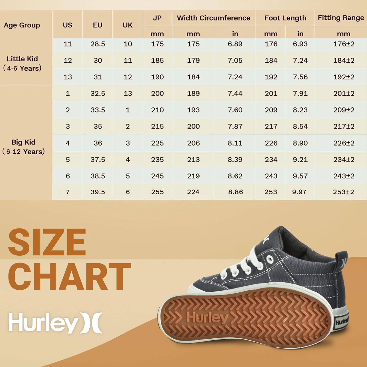 Unisex Design: Our kid’s skateboarding sneakers are designed for both boys and girls. Perfect for sports and casual wear, these shoes are great for toddlers and big kids. Hurley sneakers are available from size 12 & 13 little kids to 1,2,3,4,5,6 & 7 big kids