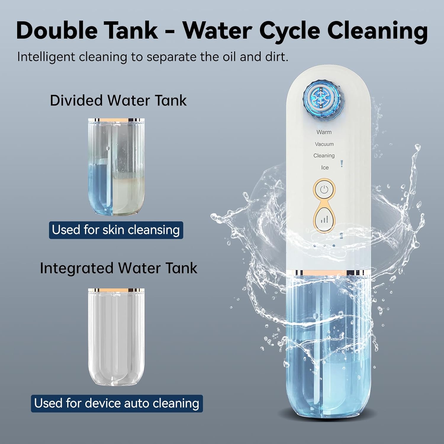 5 in 1 Comprehensive Skincare: Our powerful pore vacuum blackhead remover features five functions. The “Warm” mode helps open pores, soften blemishes, and dissolve blackheads. The “Vacuum” mode quickly removes blackheads, whiteheads, dirt, and oil from the skin. “Clean” mode uses water to nourishes your pores while cleaning, and “Ice” mode helps tighten the pores. Additionally, the pore sucker can clean itself automatically, allowing you to easily experience a salon-level skincare at home.