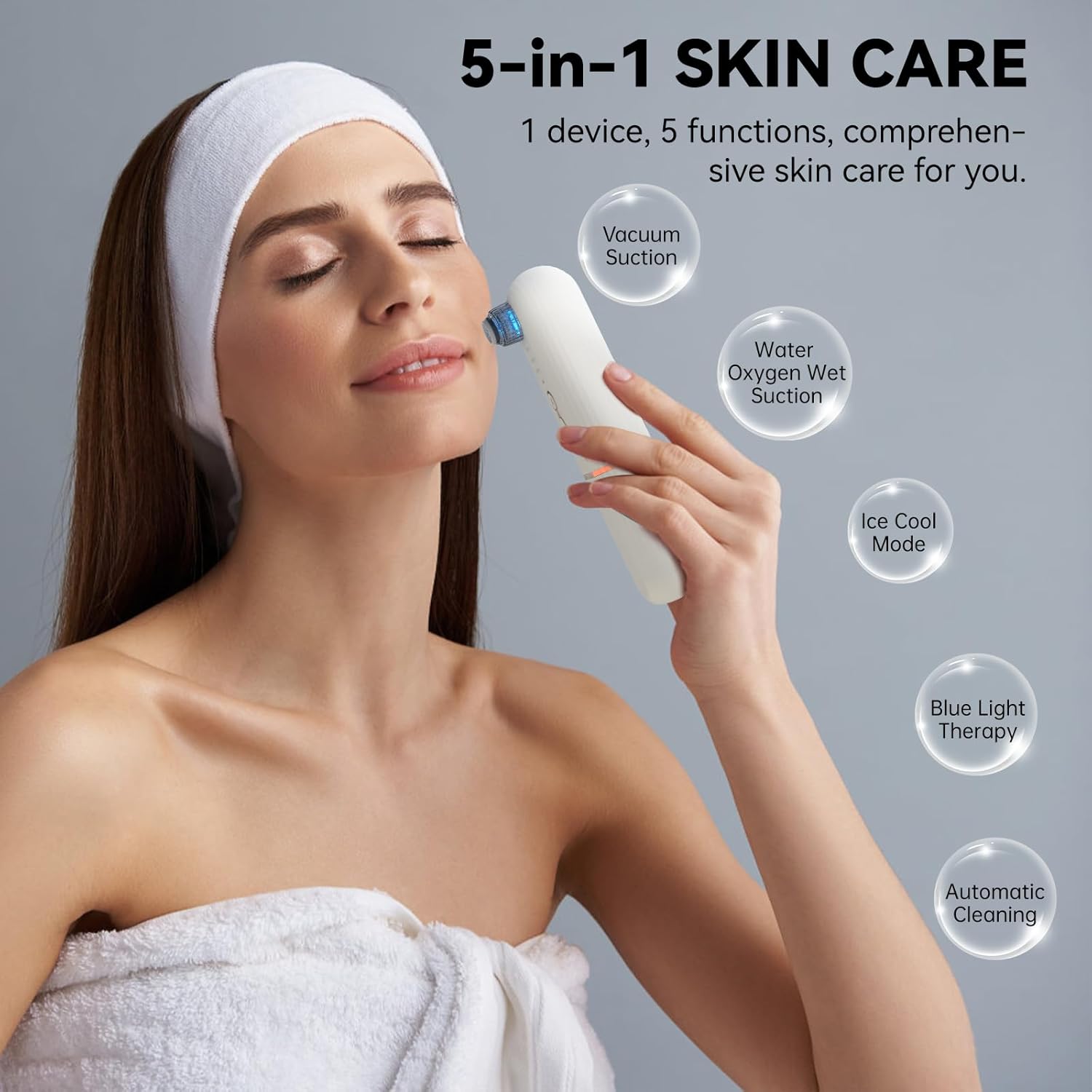Hydrafacial Pore Vacuum, 5 in 1 Blackhead Remover Vacuum with Hot & Cold Water Compress, Blackhead Extractor with 3 Suction Power 2 Suckers, Professional Blackhead Remover Tools for Face & Nose