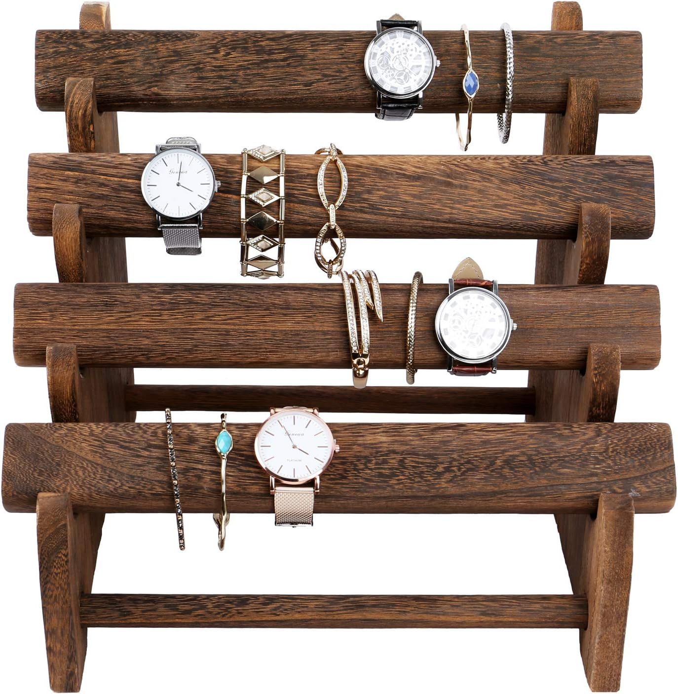 WOODEN BRACELET DISPLAY WITH 4 OVAL SHAPED REMOVABLE BARS – An oval-shaped watch holder bar provides a stable display for watches and bangles, minimizing the risk of slipping. With the 4-tier design enables you to easily see all of your jewelry, keep them in sight and easily accessible.