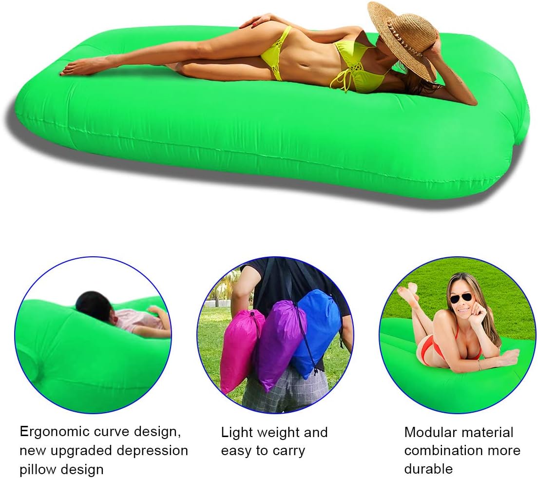 Inflatable Couch Blow Up Air Sofa Outdoor Picnic Folding Beach Chair Camping Gear Accessories Kids Air Mattress Beds for Adults Includes Travel Bag