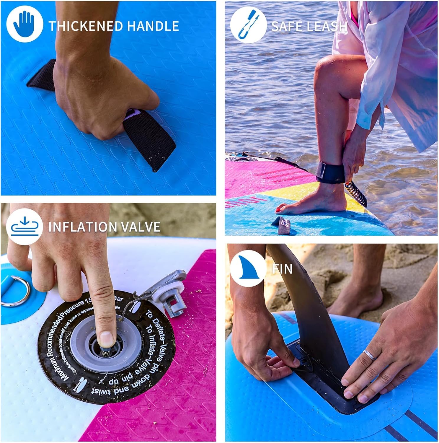 All-in-one travel standing inflatable paddle board is suitable for a variety of scenarios, more suitable for beginners. The paddle blade thickness and volume in the stability of a good situation to two or more things sliding speed, also can smoothly row when surfing.