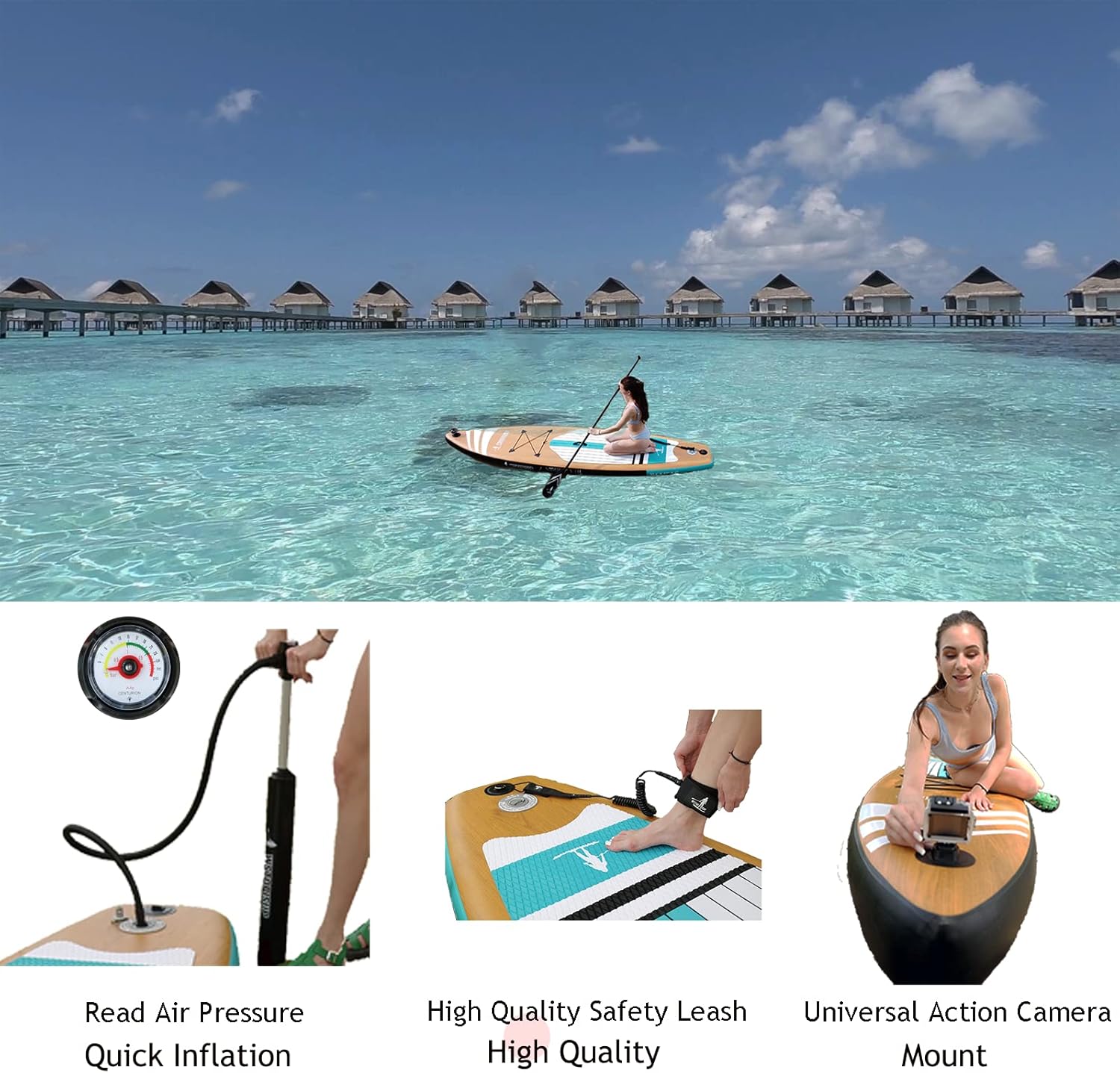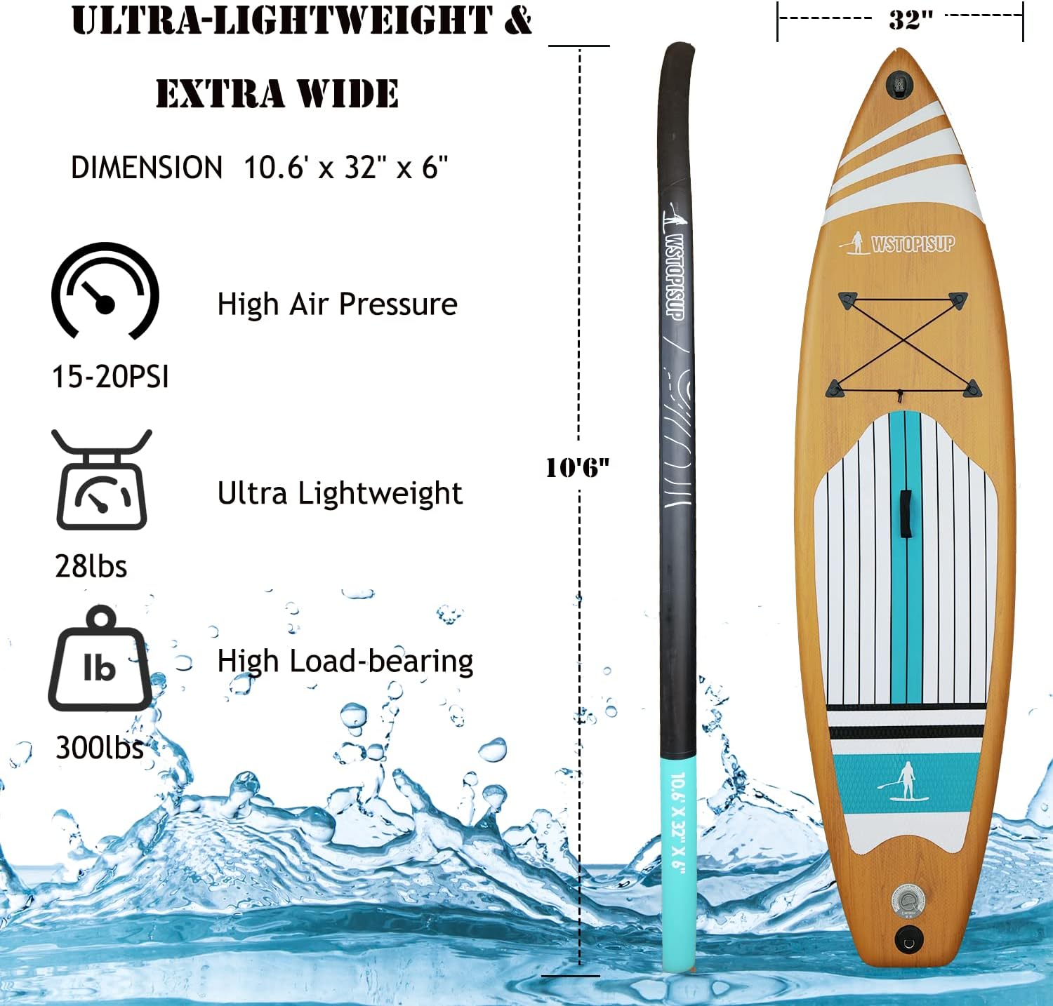 Inflatable Stand Up Paddle Board, 10’6″ Premium Paddleboard with All Premium SUP Accessories & Backpack,Adjustable Paddle,Non-Slip Deck Pad,Fin, Safety Leash, Hand Pump