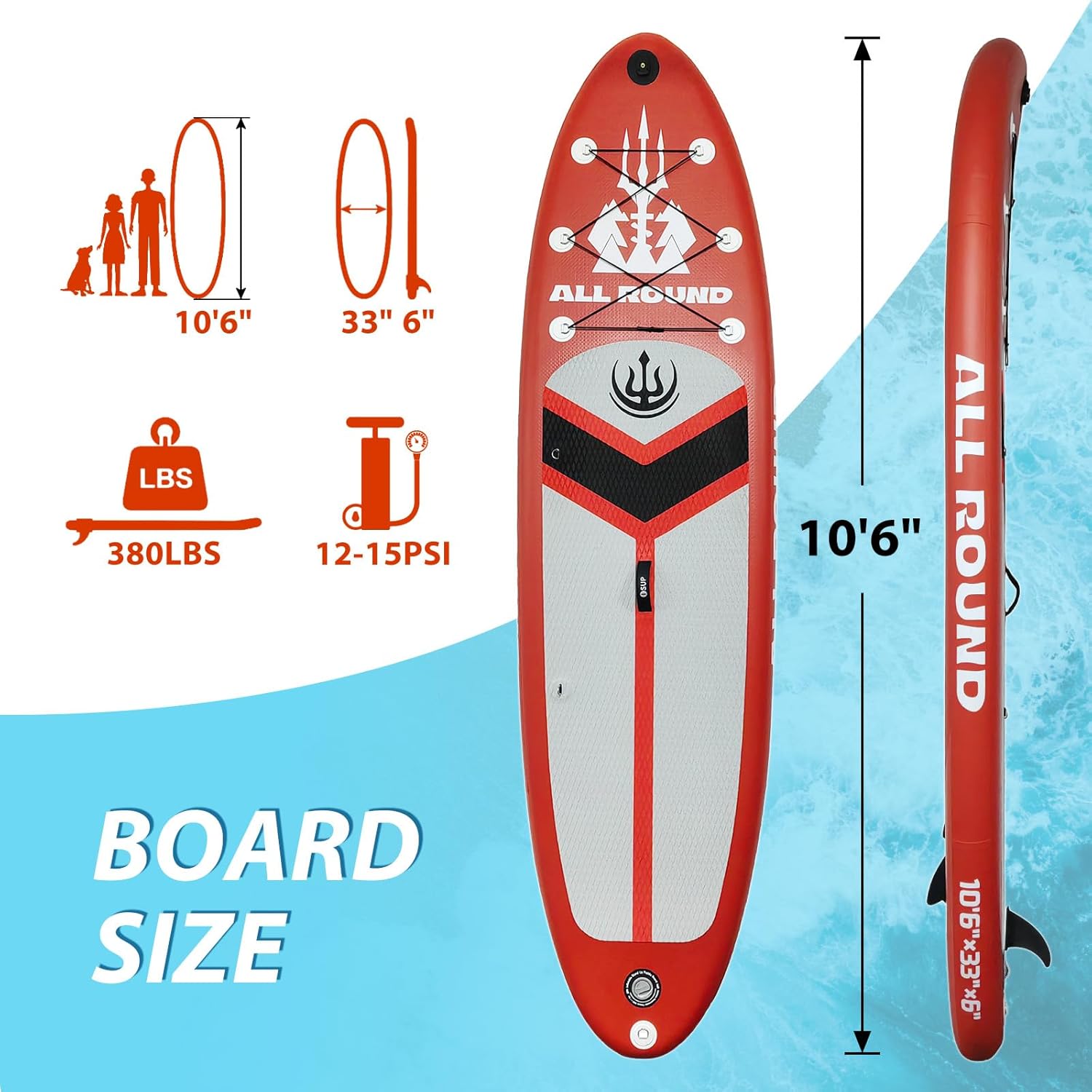Inflatable Stand Up Paddle Board, 10’6” x 33” x 6” Fishing Paddle Board with Premium Sup Paddle Board Accessories, and Full Accessories for All Water Sports Skills