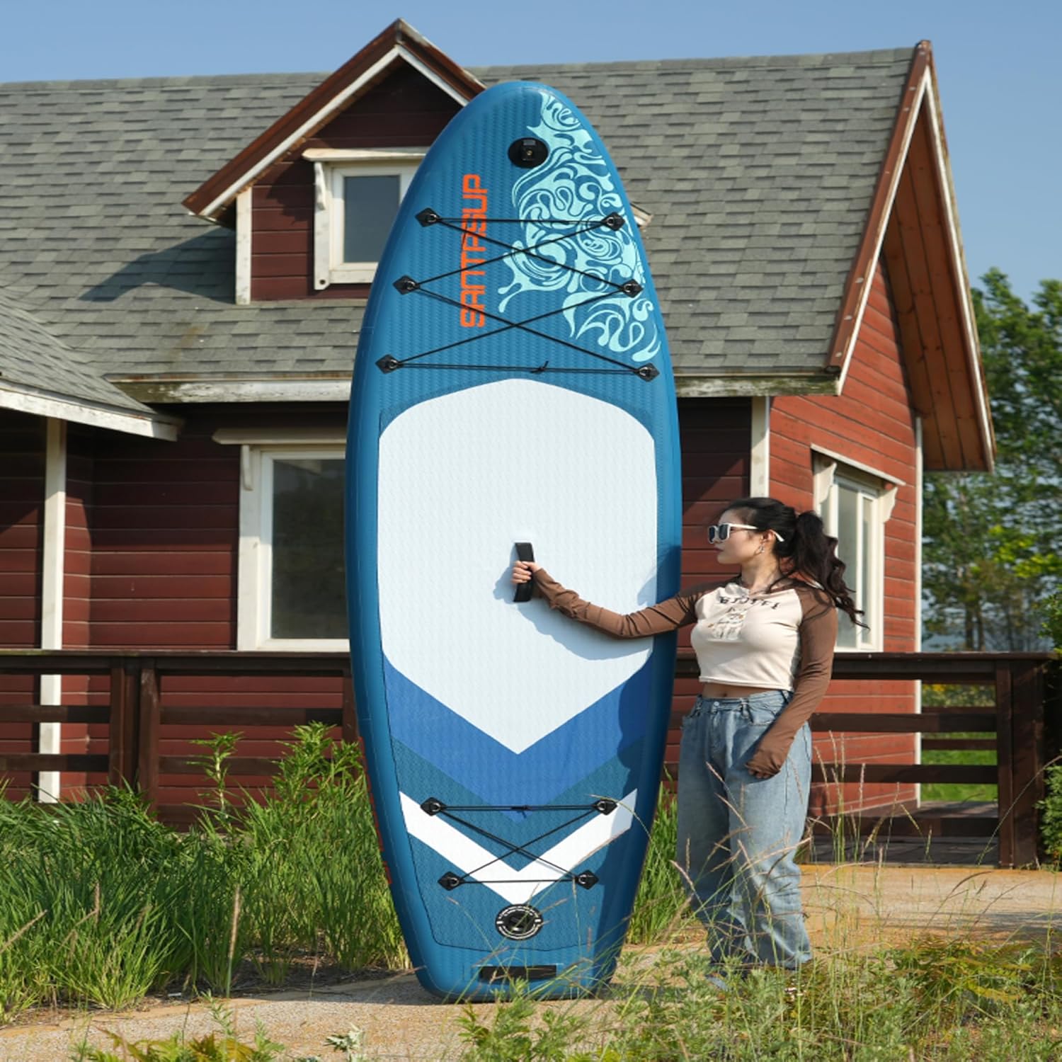 ChicFurnit Inflatable Stand Up Paddle Board for All Skill Levels, With Premium SUP Accessories & Backpack, Bottom Fin for Paddling, Paddle, Leash, Antique Blue