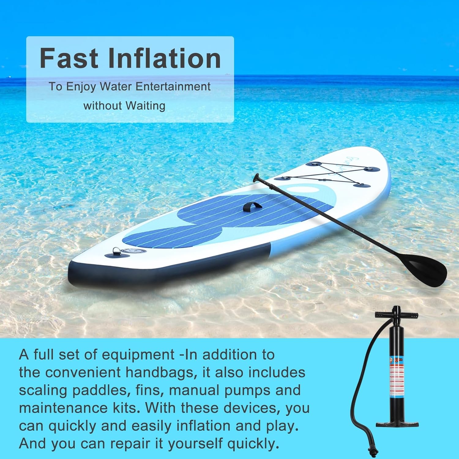 🚣Versatile Water Fun: Our Inflatable Stand-Up Paddle board is perfect for all skill levels, whether you’re a beginner or an experienced water enthusiast. Take it on a cruise through oceans, lakees, or rivers and enjoy activities like surfing, water yoga, fishing, and more.