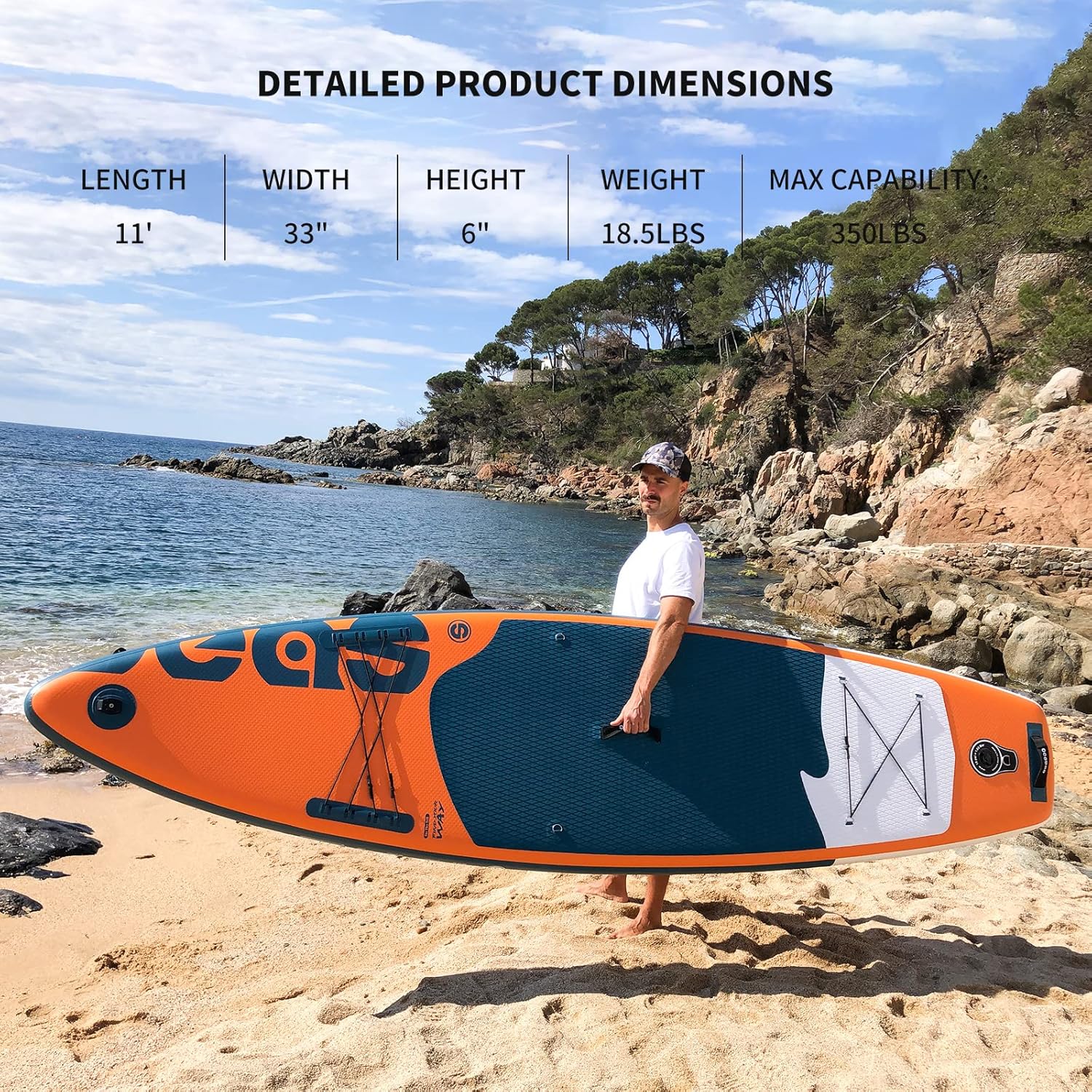 Inflatable Stand Up Paddle Boards with SUP Accessories, 11ft Paddle Board, Durable, Lightweight, 33″ Wide Stable Design for Adults Overweight, Dual Action Pump & Gopro Mount