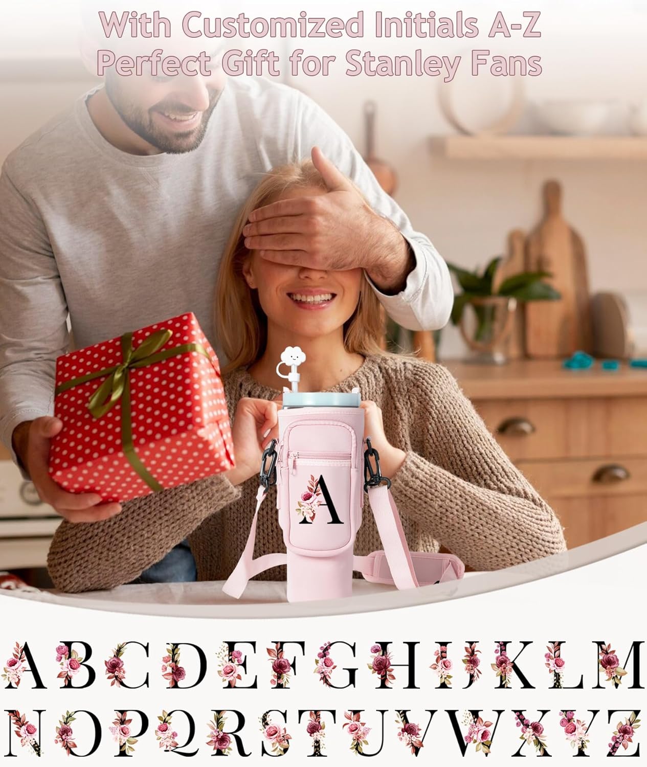 🥤【Perfect Gift for Stanley Fans】Featuring an eye-catching initial letter design on the front, A-Z 26 Letters available, and the water bottle holder for stanley is bollus with cute straw cover & carabiner, keeps the straw and cup hygienic, let you drink with confidence anytime. What’s more, the water bottle holder for stanley 40 oz tumbler with handle is packaged in a beautiful package, which make it an perfect gift for Stanley fans, birthday, Valentine’s Day, Christmas, Mother’s Day, and more.